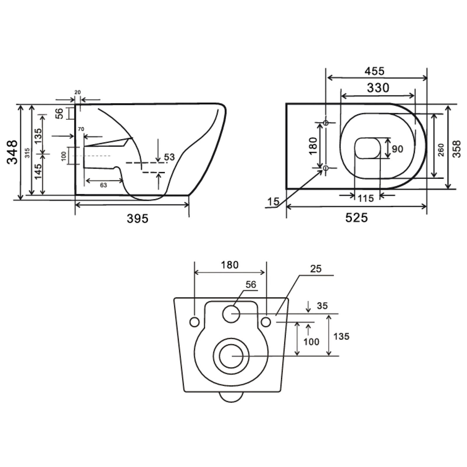 Wandhängende WC-Schüssel MILARGO randloser Drall mit Duroplast-Sitz weiß