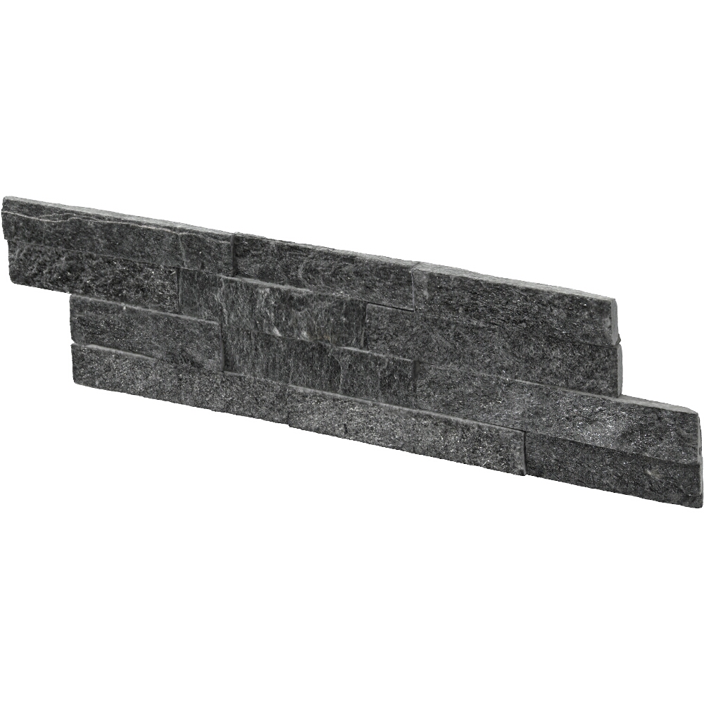Verblender verleiht dem Interieur Adel, bringt Ruhe und ein Gefühl der Verbundenheit mit der wahren Natur. Nero ist minimalistische Eleganz mit überraschend vielen Gesichtern. Die schwarze Farbe des Steins wird durch natürliche Versilberung beleuchtet - abhängig vom Einfallswinkel des Lichts und seiner Lichtquelle. Nero spielt mit Hell-Dunkel und verändert sanft die Färbung, die zwischen Schwarz, Anthrazit und Dunkelgrau oszilliert. Die in geometrische Längsstreifen geschnittenen Fliesen haben unterschiedliche Stärken (Differenz bis zu 5 mm), die bei der Verlegung einen eleganten dreidimensionalen Effekt an der Wand erzeugen. Nero passt sowohl in traditionelle als auch in sehr moderne oder sogar asketische Interieurs. Es bereichert sie und verleiht ihnen luxuriöse Tiefe.
