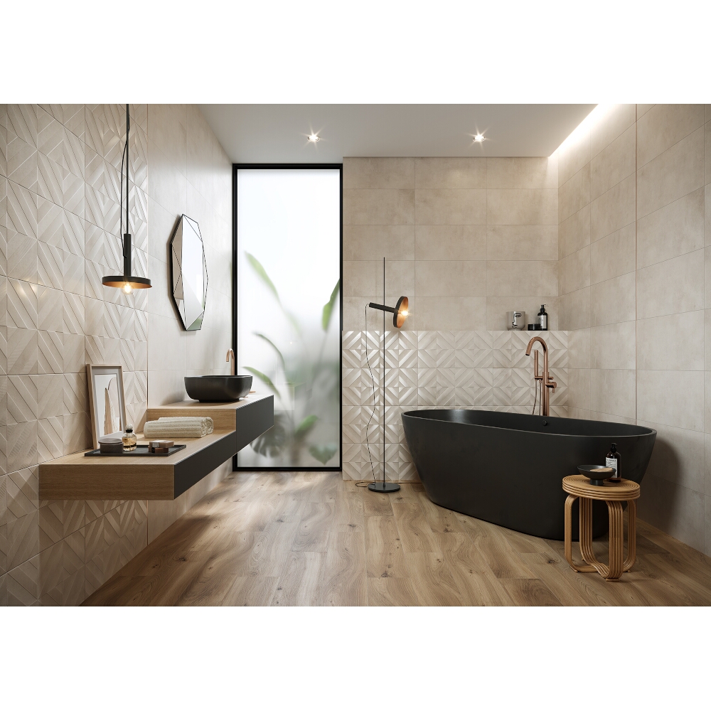 Für den Innenbereich. Wandfliesen können nur an der Wand verlegt werden, da ihre Glasur nicht begehbar ist und ihre Tragfähigkeit für eine Verlegung auf dem Fußboden nicht ausreicht.