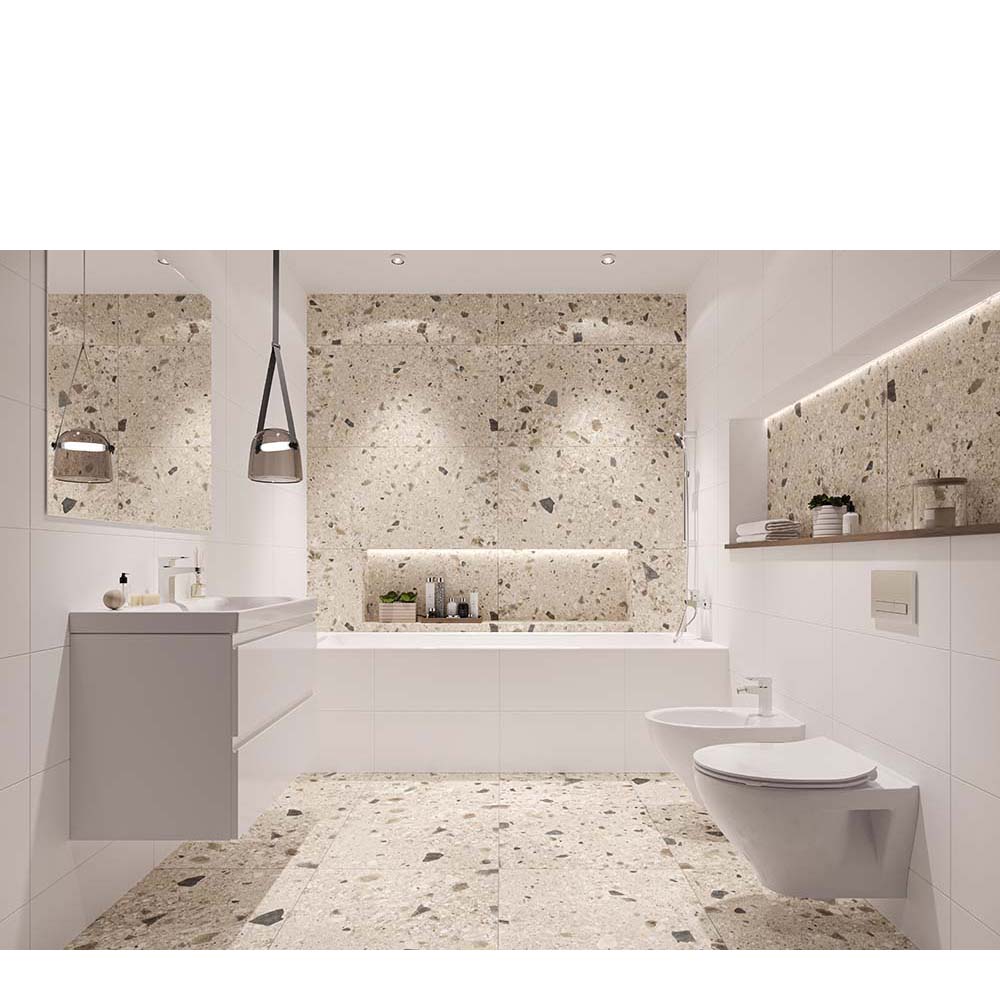 Dekoriertes Feinsteinzeug ist ein vielseitiges und sehr attraktives Verkleidungsmaterial, das im Innenbereich für Fußböden und Wände und im Außenbereich als frostsicherer Bodenbelag und Fassadenmaterial verwendet wird. Das ist sehr beständiges und multifunktionales matterial.
