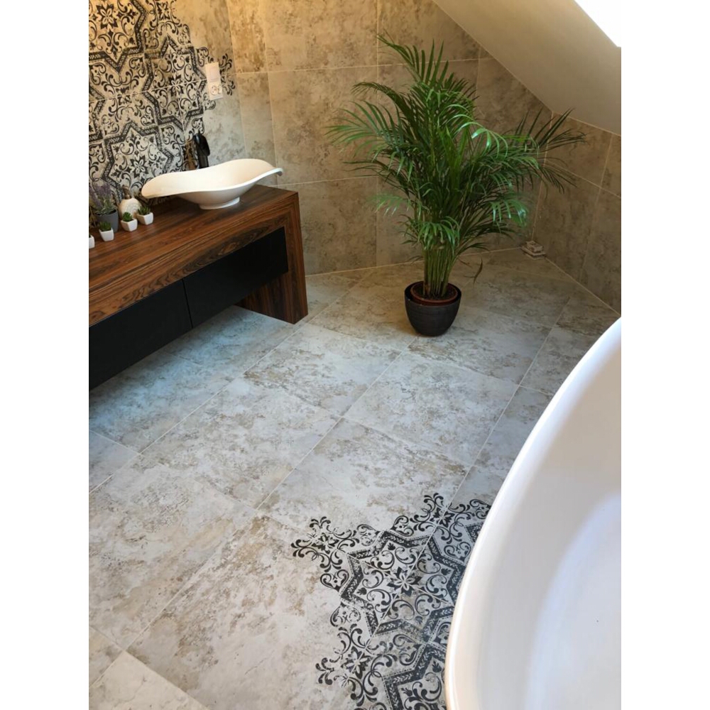 Dekoriertes Feinsteinzeug ist ein vielseitiges und sehr attraktives Verkleidungsmaterial, das im Innenbereich für Fußböden und Wände und im Außenbereich als frostsicherer Bodenbelag und Fassadenmaterial verwendet wird. Das ist sehr beständiges und multifunktionales matterial.