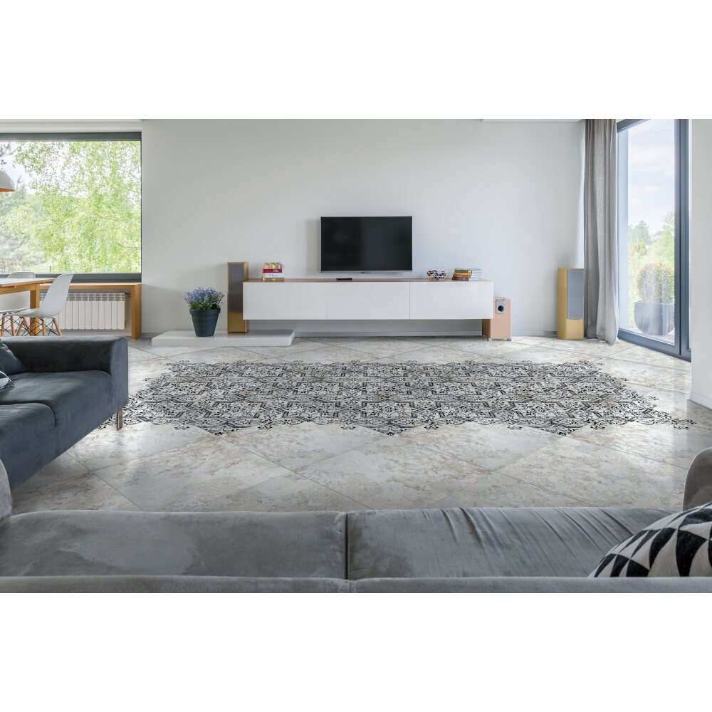 BODENFLIESE CARPET MINDANAO DECOR SCHWARZ SATIN 60,8X60,8 ABSOLUT KERAMIKA. Erste Wahl.