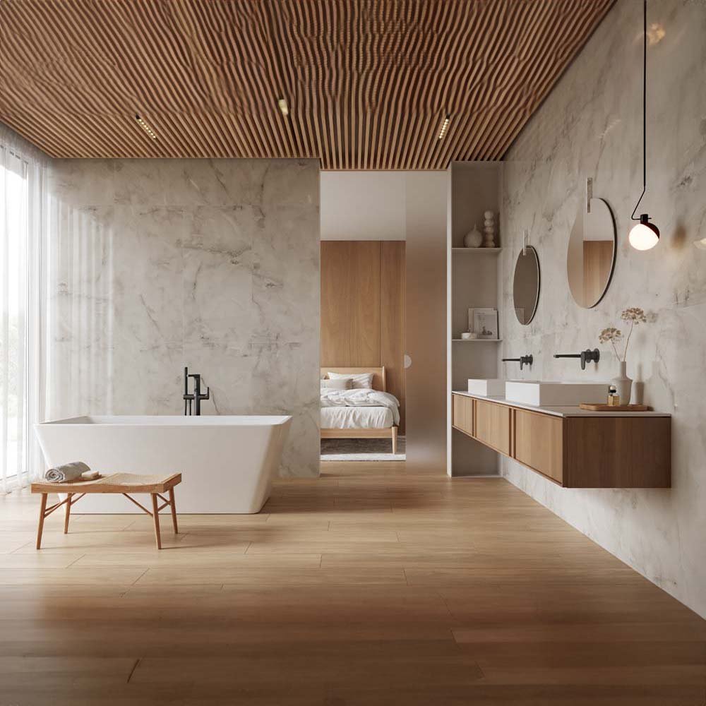 Dekoriertes Feinsteinzeug ist ein vielseitiges und sehr attraktives Verkleidungsmaterial, das im Innenbereich für Fußböden und Wände und im Außenbereich als frostsicherer Bodenbelag und Fassadenmaterial verwendet wird. Das ist sehr beständiges und multifunktionales matterial.