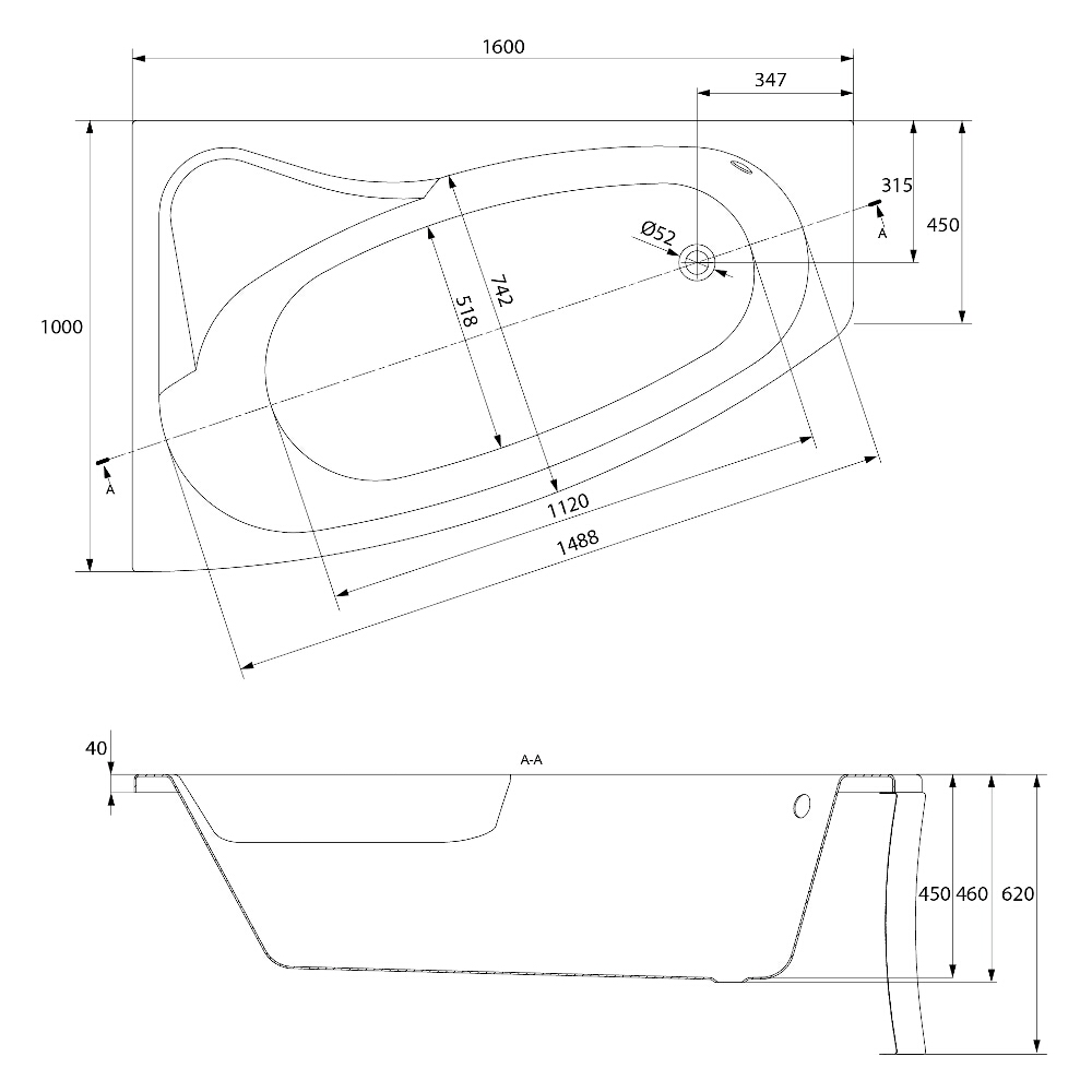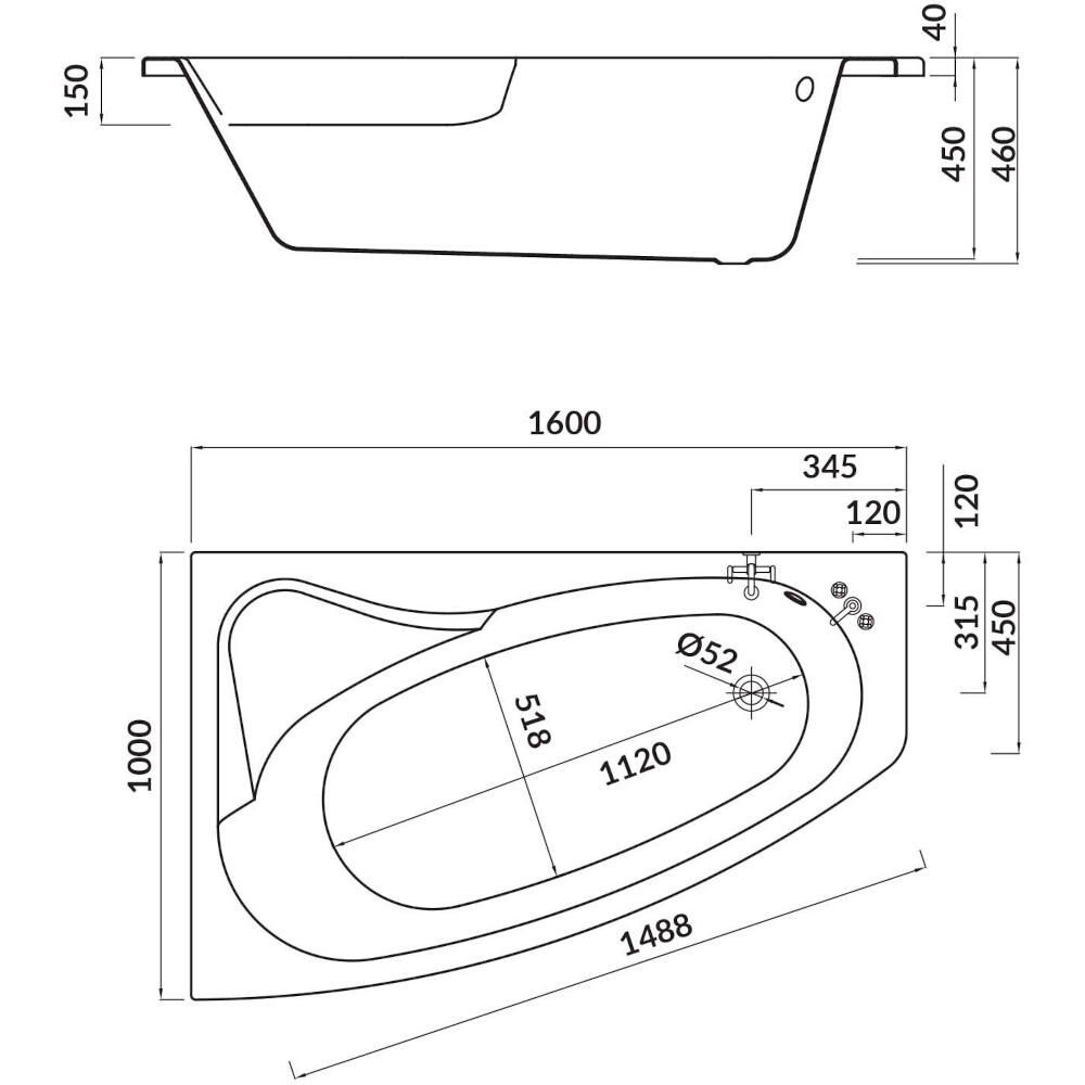 | Lage des Badewannenablaufs: | Seitlicher Abfluss, an der kürzeren Seite |
