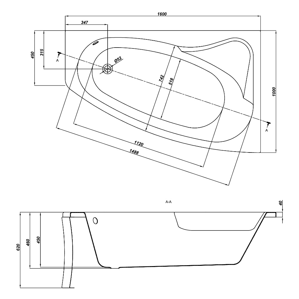 | Lage des Badewannenablaufs: | Seitlicher Abfluss, an der kürzeren Seite |