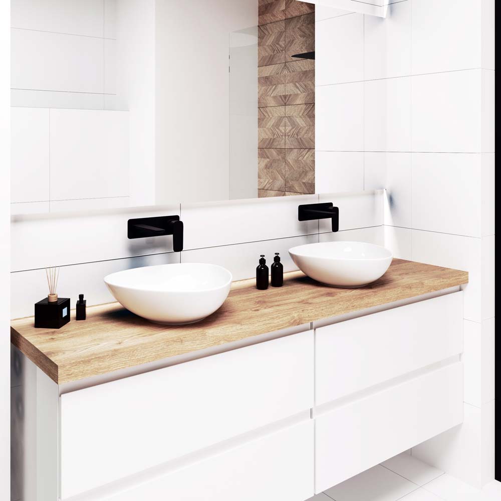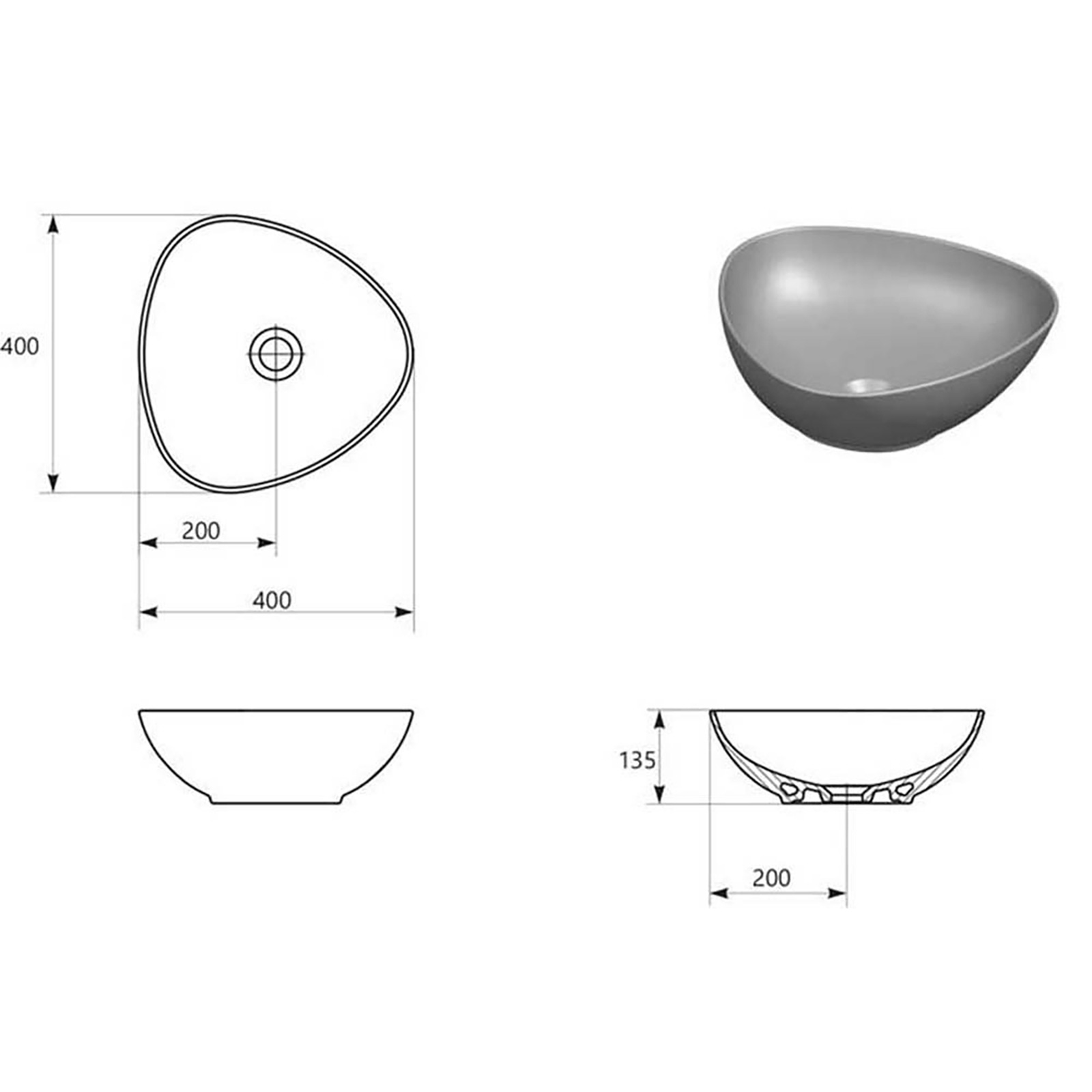 Waschbecken 40, Arbeitsplatte, unregelmäßig geformt, Keramik. Sein Designer-Look fügt sich perfekt in ein modernes Badezimmerinterieur ein. Ergonomische, unregelmäßige Form, passt sowohl in kleine Toiletten in einem Mehrfamilienhaus als auch in große Badesalons. Die Waschbecken sind auch in ovaler und runder Form erhältlich. Das Waschbecken kann in verschiedenen Kombinationen auf die Arbeitsplatte gestellt und um 360 Grad gedreht werden. Die hohe Qualität der Keramik sorgt für einen langjährigen Nutzungskomfort. Es ist ein ideales Produkt für Menschen, die Wert auf funktionale und modische Lösungen legen. Waschbecken ohne Überlauf und Loch für Armaturen.