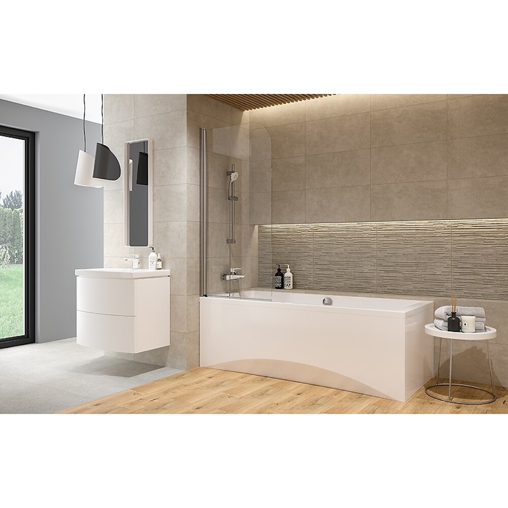 Der einflügelige Wannenschirm ist ideal für kleinere Bäder. Das Modell mit der abgerundeten oberen Ecke ist nicht nur praktisch, sondern eignet sich auch zur Innenraumgestaltung. Der Bildschirm ist beidseitig mit einer CleanPro-Beschichtung versehen, die ihn leicht zu reinigen macht und vor Kalkablagerungen und Fingerabdrücken schützt.