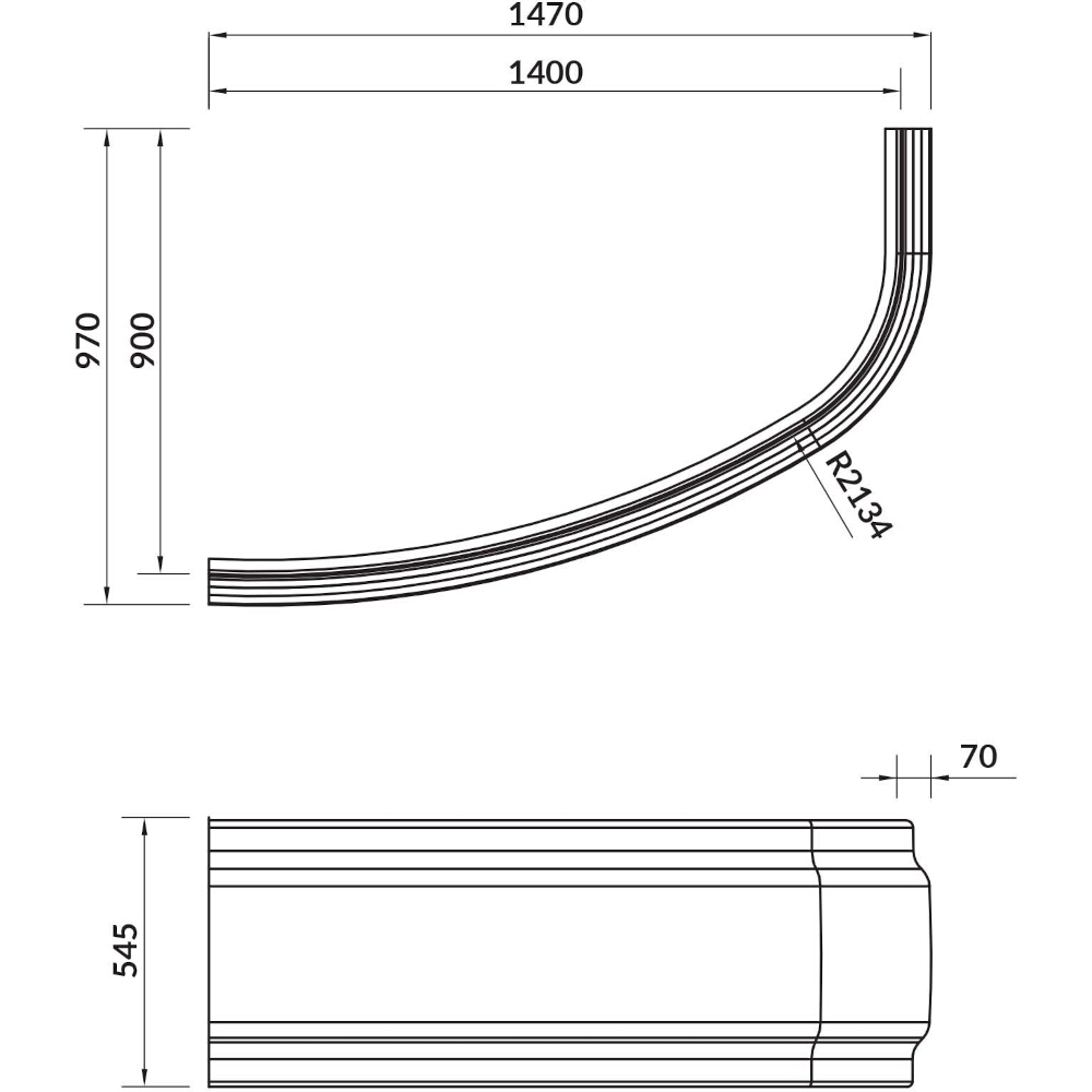 Universelle Einfassung, die sowohl für links- als auch für rechtshändige Badewannen geeignet ist.