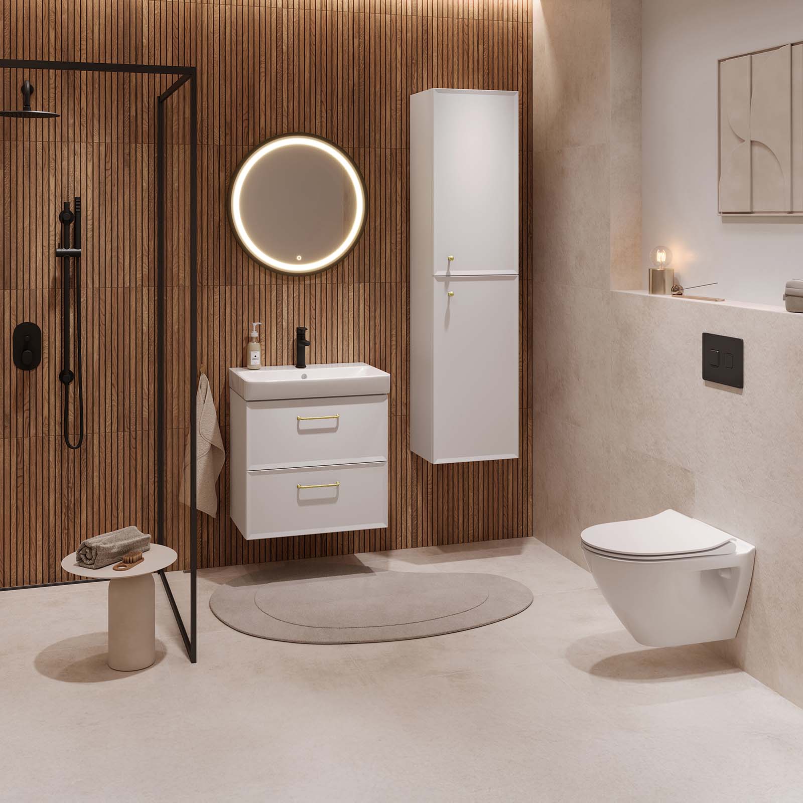Die Kollektion MILOS by Cersanit ist die Quintessenz von Klassik und Stil, geschaffen für Liebhaber eleganter Innenräume. Er eignet sich perfekt für geräumige Badezimmer, in denen anspruchsvolles Design mit Ästhetik und Funktionalität einhergeht. Möbelaccessoires in Gold, Silber oder Schwarz, die perfekt zu den Fronten in Weißtönen passen, bilden ein harmonisches und stilvolles Ganzes. Jedes Detail dieser Kollektion unterstreicht den eleganten Charakter des Interieurs und trägt zu seinem einzigartigen Charme bei. Die Kollektion MILOS by Cersanit besticht durch ihre eleganten und zeitlosen Farben, die perfekt zu modernen und klassischen Innenarchitekturen passen. Weiß verleiht dem Interieur Frische, vergrößert den Raum optisch und bringt Harmonie in das Badezimmer.