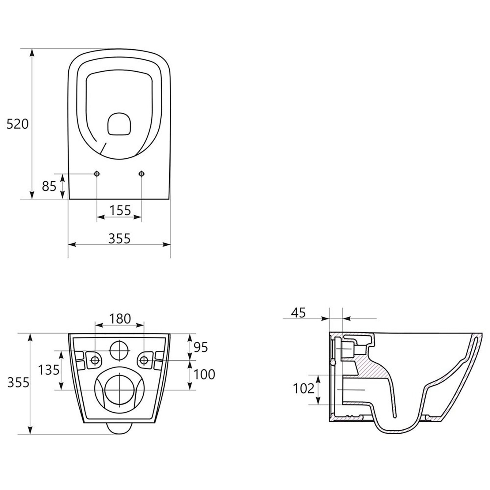 | Typ der Schüssel: | Flanschloser Wirbel WC-Becken |