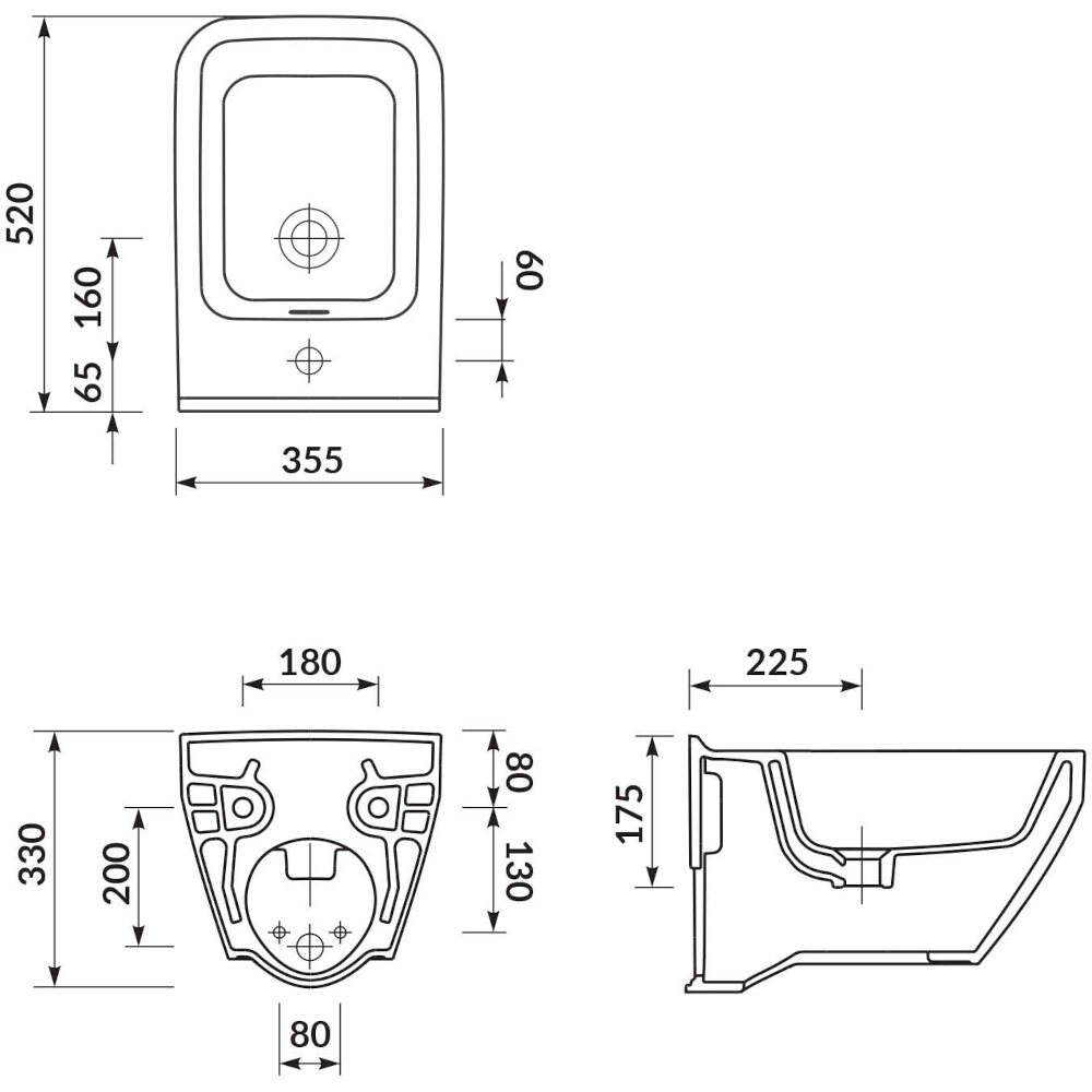 CERSANIT CREA rechteckiges wandhängendes Bidet mit verdeckter Befestigung K114-010