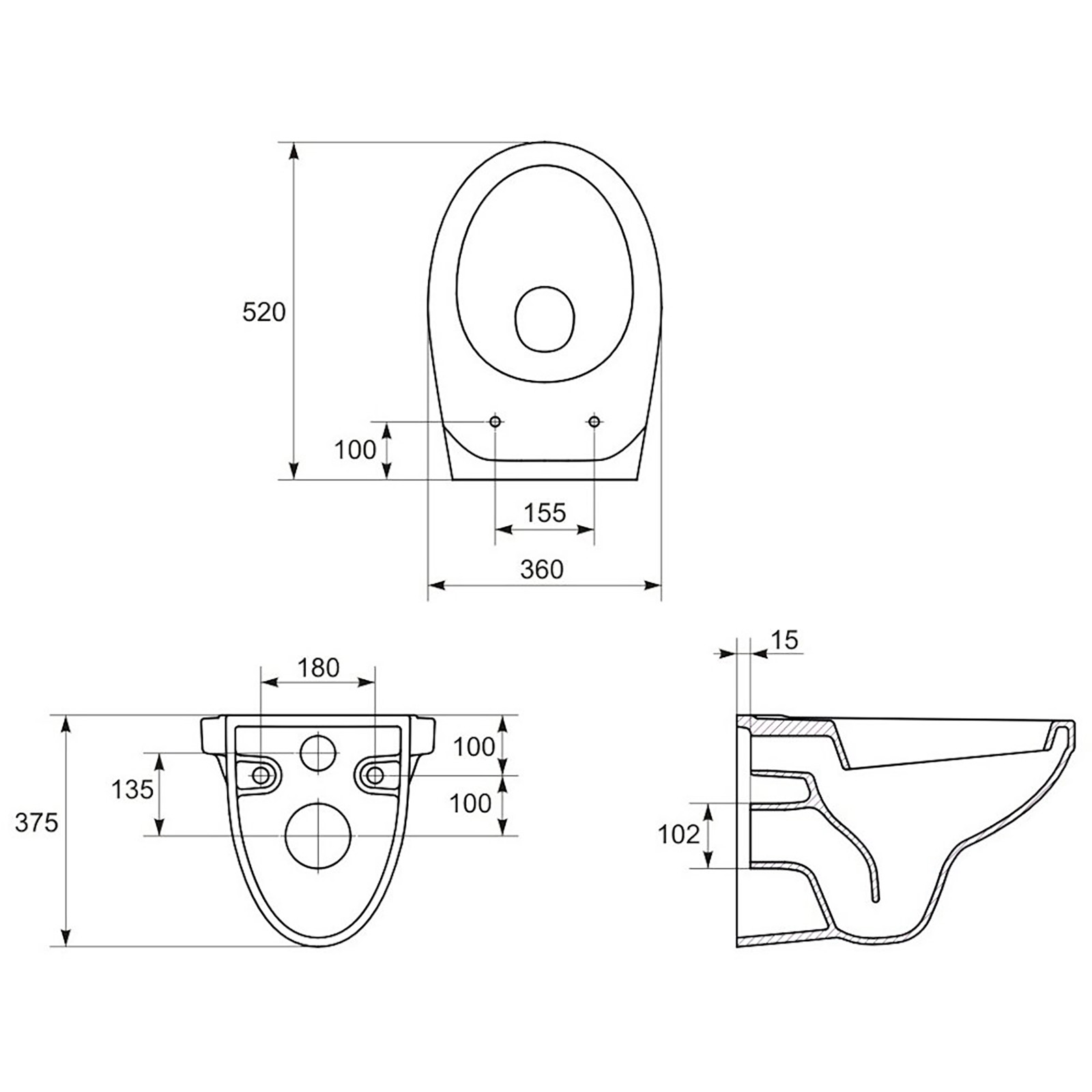 Das wandhängende DELFI-Becken ist für das 3/6 l Sparspülsystem angepasst und mit einem horizontalen Wasserablauf ausgestattet. Der Preis ist für die Schüssel allein ohne den Toilettensitz, aber es ist möglich, sie zu vervollständigen.