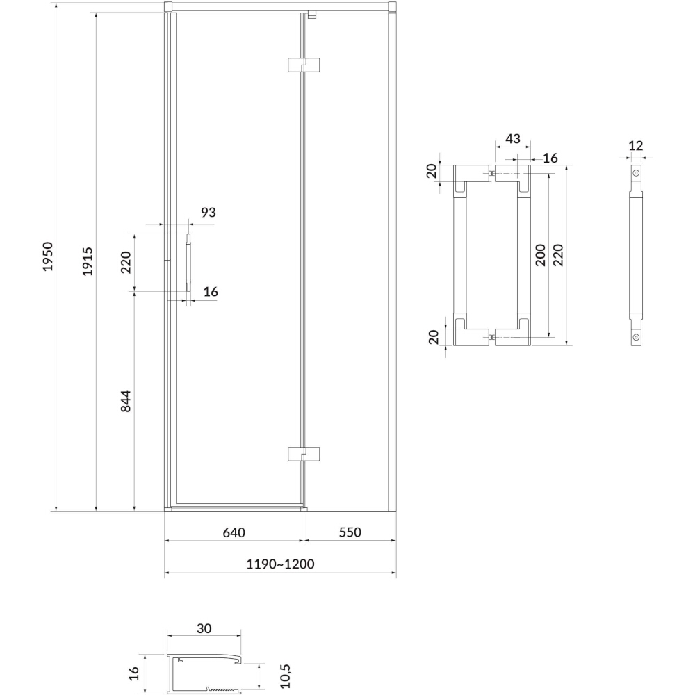 CERSANIT LARGA rechteckige Duschkabine rechts 120x90x195 cm schwarz S601-317