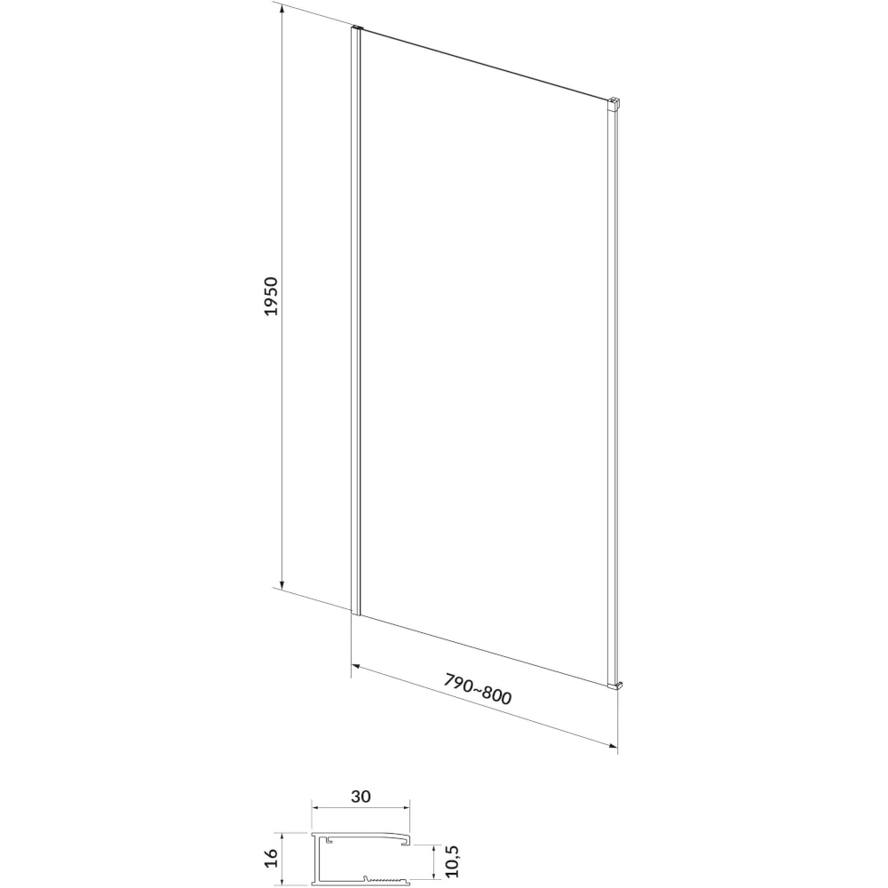 CERSANIT Duschwand Larga schwarz 80x195 transparentes Glas S932-133