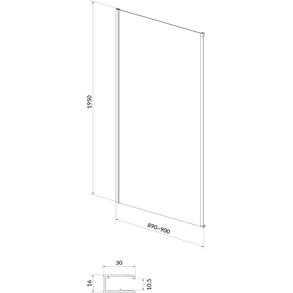 CERSANIT Duschwand Seite LARGA schwarz 90x195 transparentes Glas S932-134