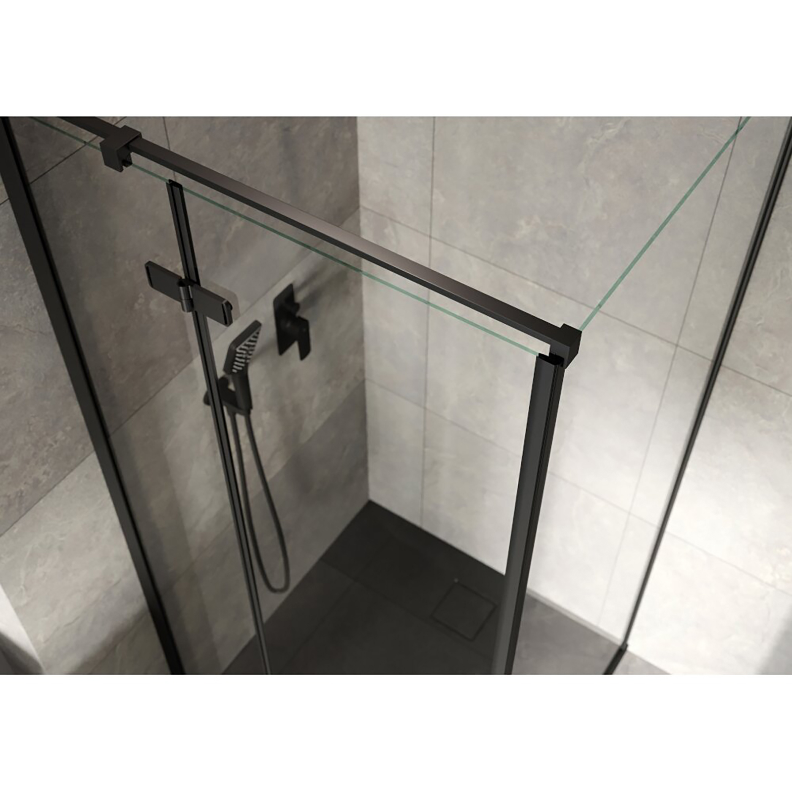 Eck-Duschkabine JOTA links schwarz 90x90x195 transparentes Glas.