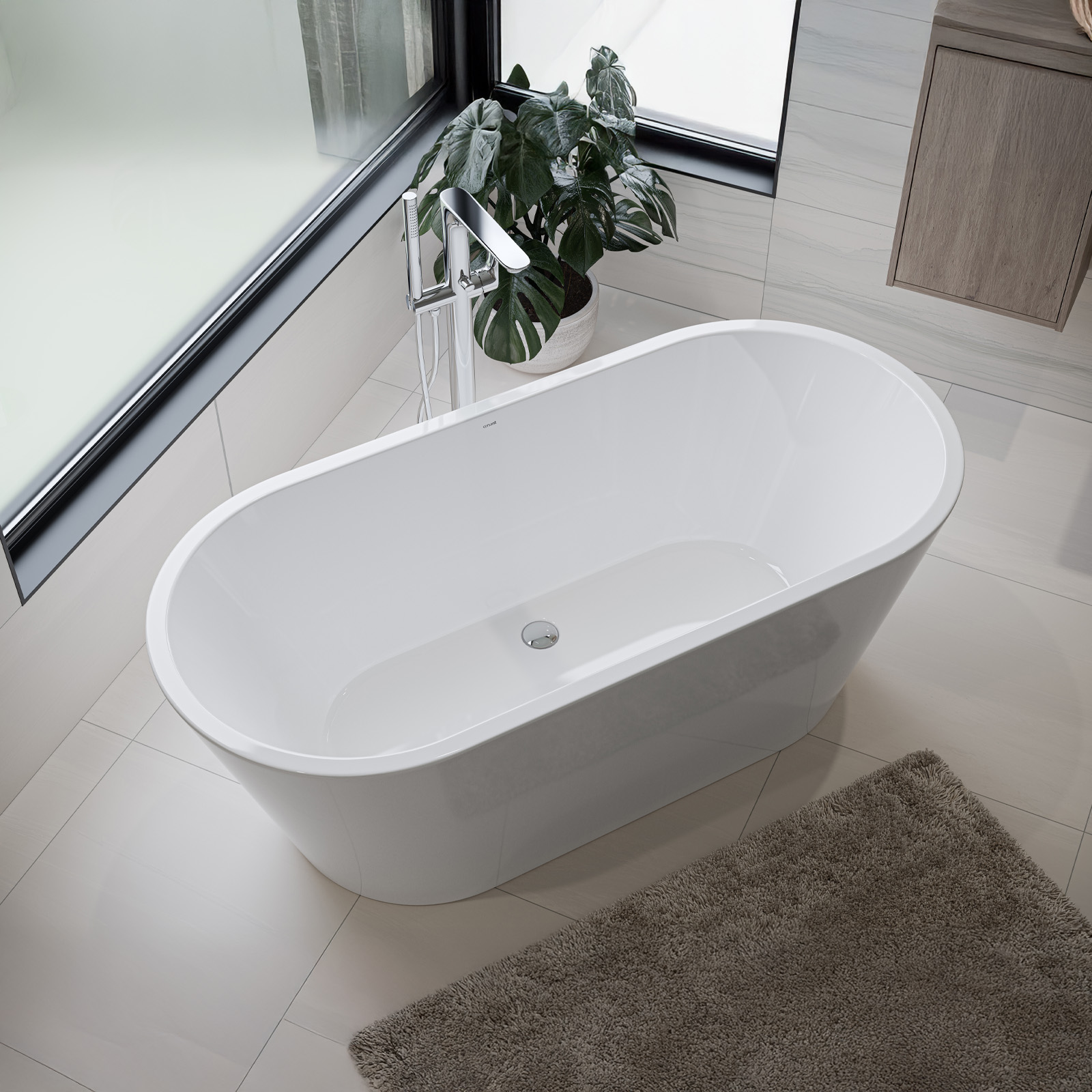 - Ästhetik und Funktionalität: Die ovale Form und die schlanken, vielseitigen Linien der freistehenden Badewanne Crea fügen sich perfekt in jedes Bad ein. Wie auch immer der Stil Ihres Badezimmers aussieht, die Crea-Badewanne verleiht ihm Luxus und Eleganz.