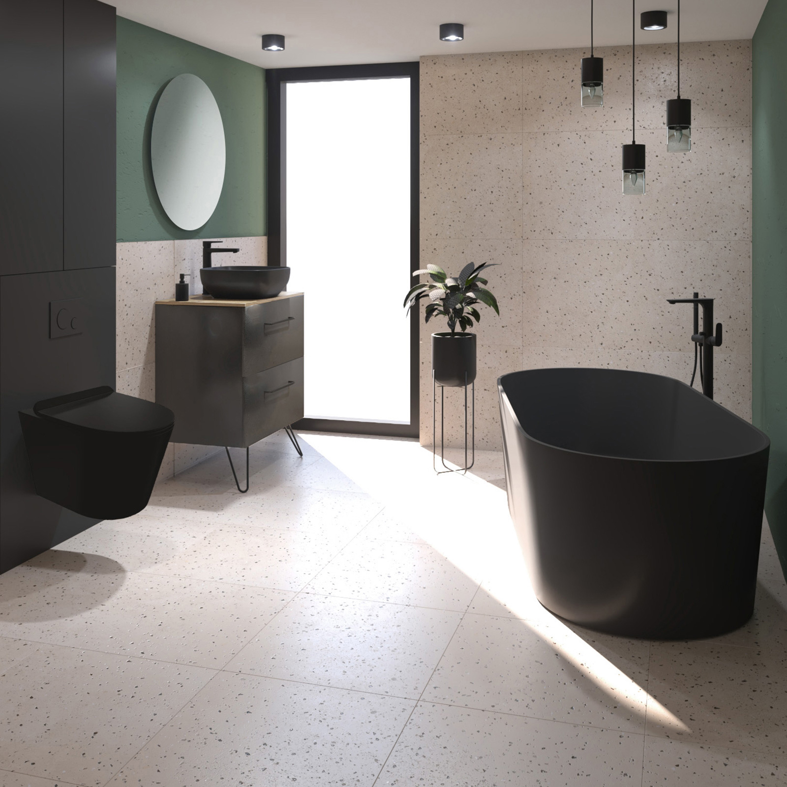 Cersanit's CREA freistehende Wannen- und Duscharmatur in Schwarz.