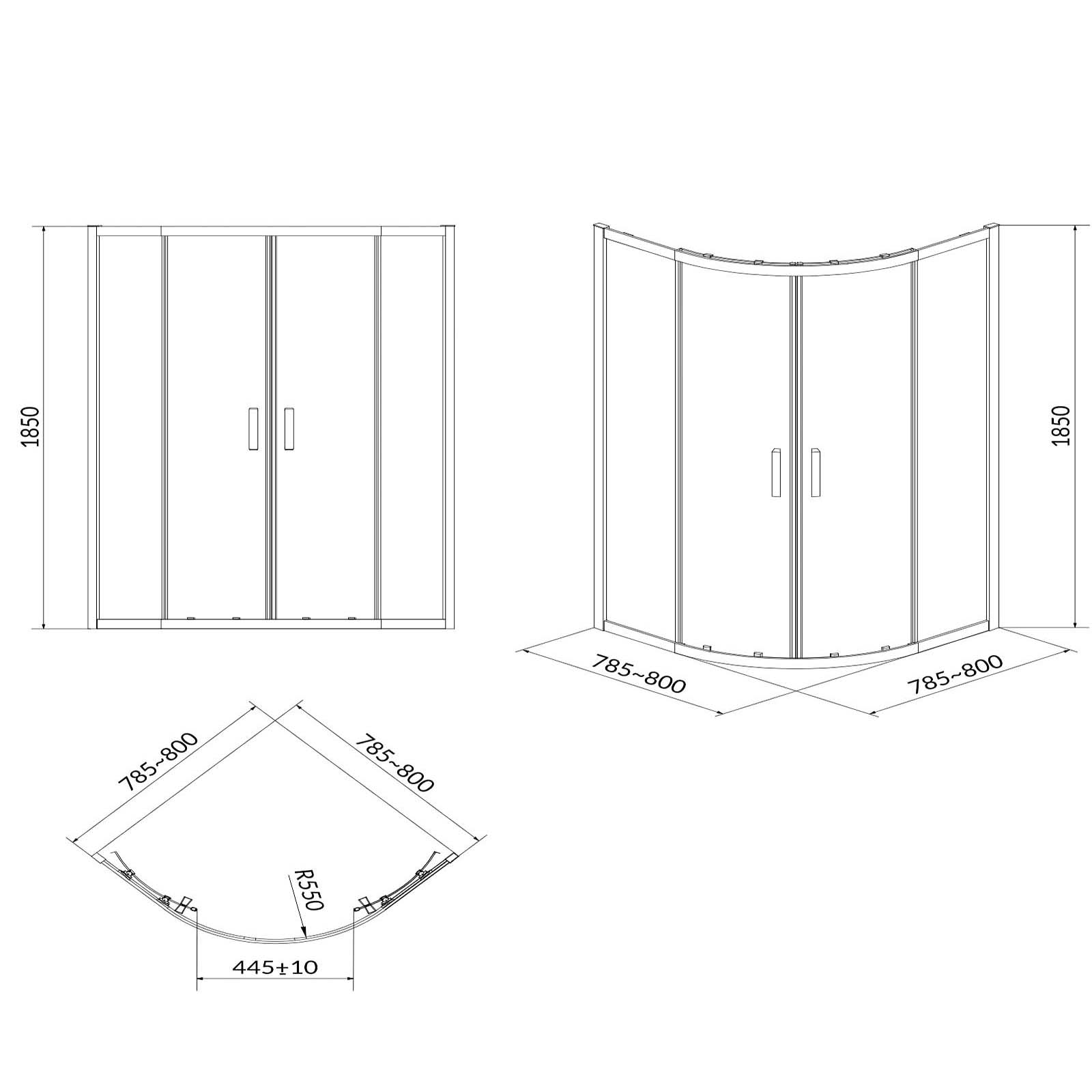 CERSANIT Halbrunde Duschkabine BASIC 80X80X185 transparentes Glas S158-003