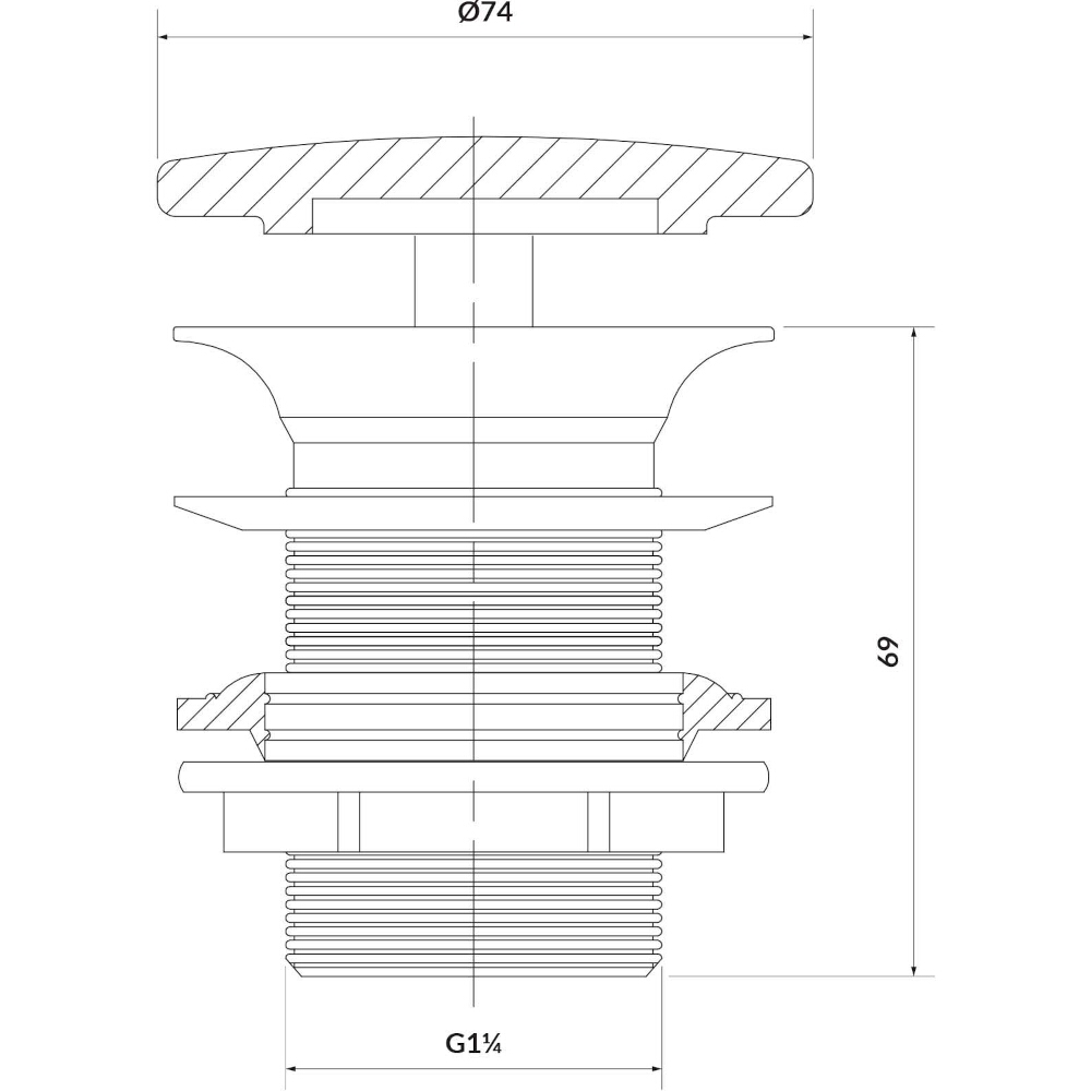 Keramikstopfen euroweiß, Mechanismus aus langlebigem Messing und mit Silikondichtungen versehen. Das macht ihn nicht nur elegant, sondern auch luftdicht und zuverlässig, extrem einfach zu installieren und zu bedienen. Die Farbe des flachen Pilzes passt perfekt zur Farbe Euro White der Keramik der Serie Larga. Zur Verwendung mit Waschbecken ohne Überlauf