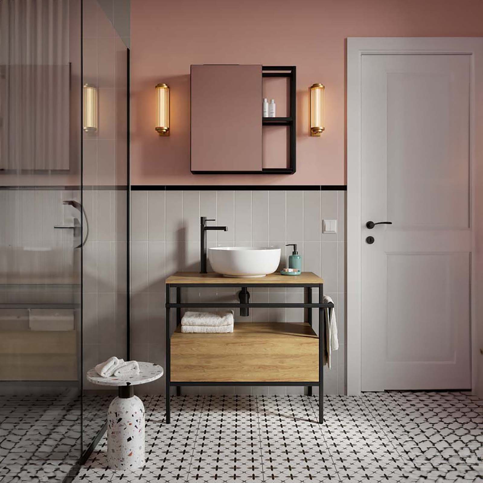 Die Garda Stahlkonsole ist eine Alternative zum klassischen Waschtischunterschrank und verbindet originelles Design mit außergewöhnlicher Funktionalität. Es verleiht dem gesamten Raum Charakter.