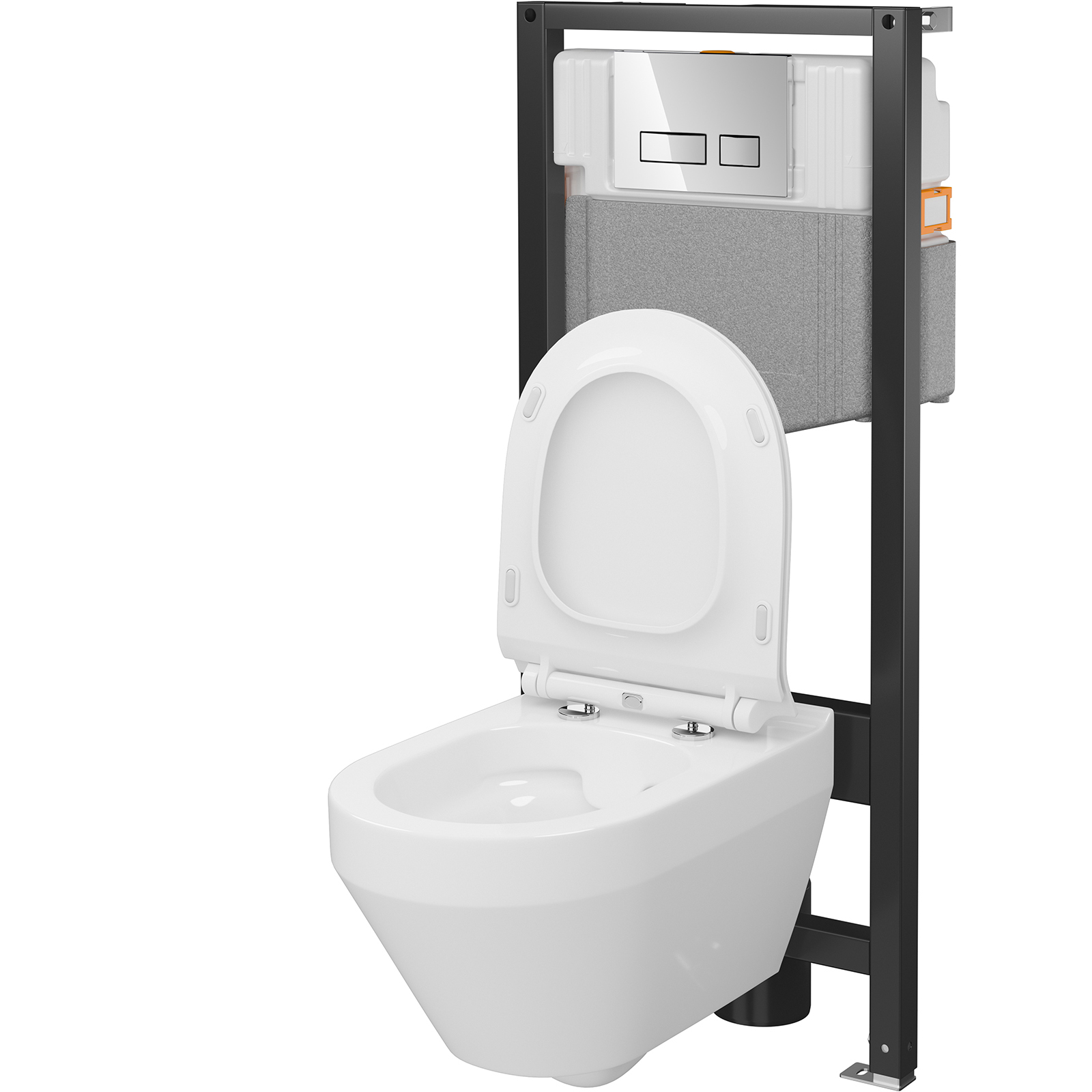 Herstellergarantie: 10 Jahre für Vorwandelement und Keramik, 3 Jahre für Druckknopf, 2 Jahre für WC-Sitz