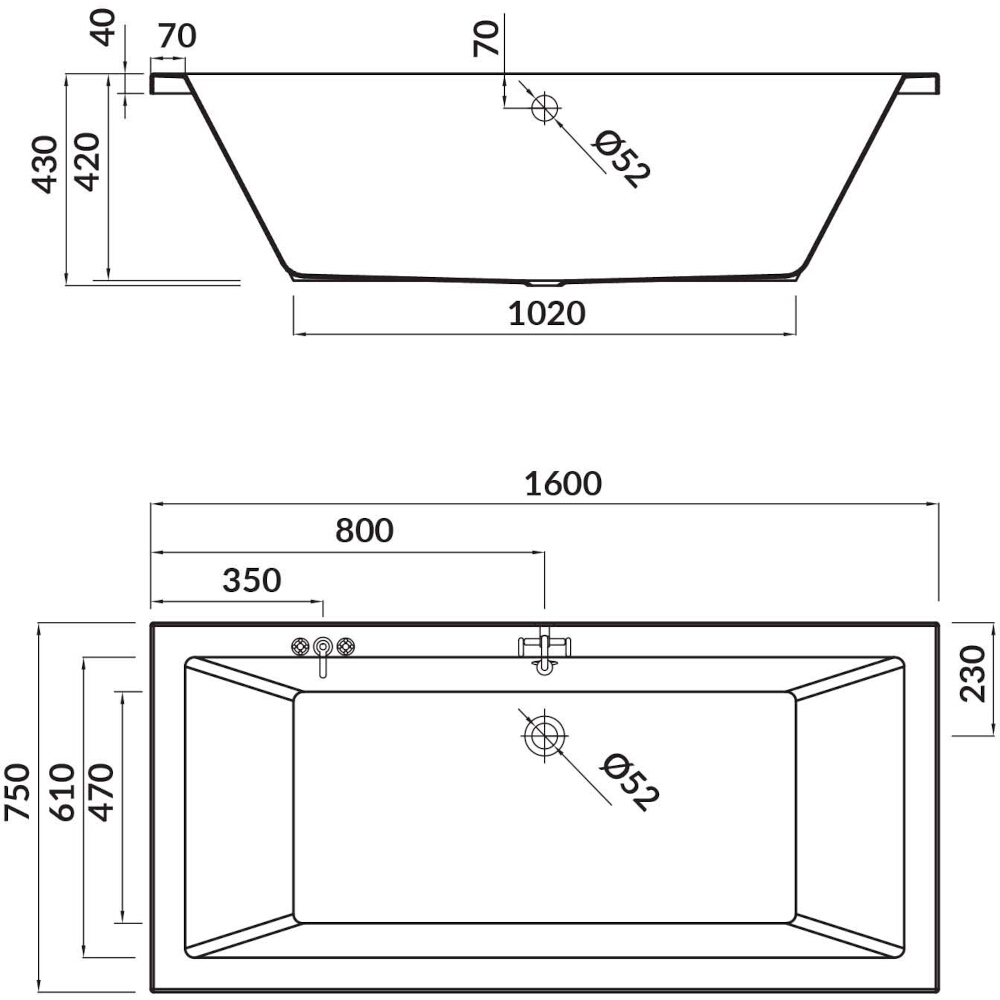 | Lage des Badewannenablaufs: | Zentraler Abfluss, an der Längsseite |