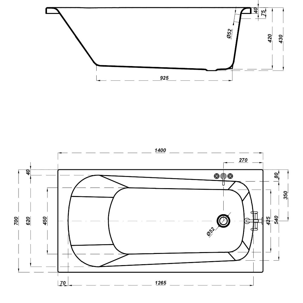 CERSANIT Rechteckige Badewanne NAO 140x70 S301-247