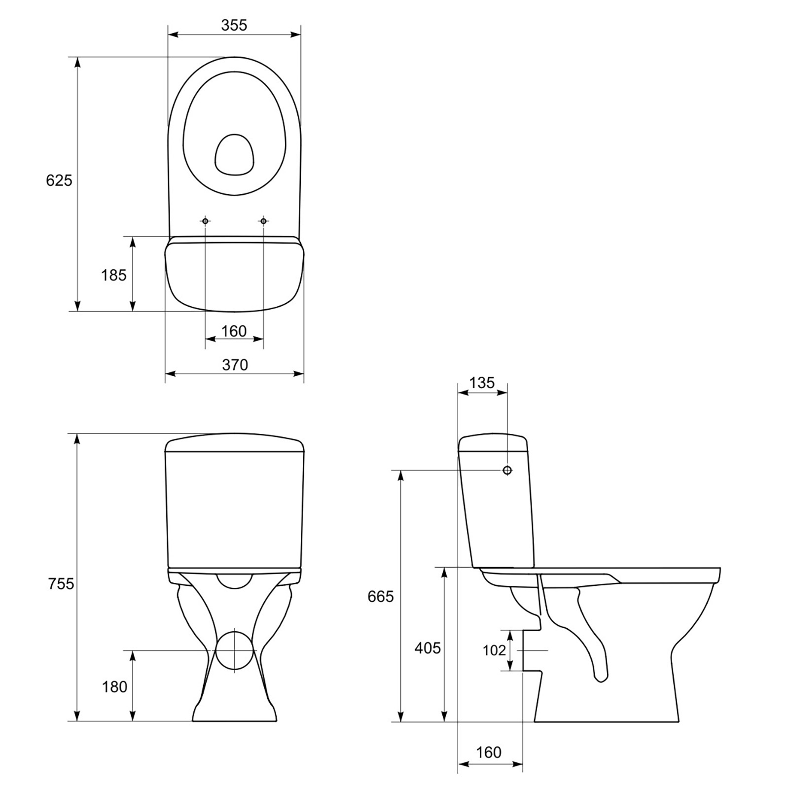 - Höhe der Stand-WC Schüssel mit Spültank: 755mm