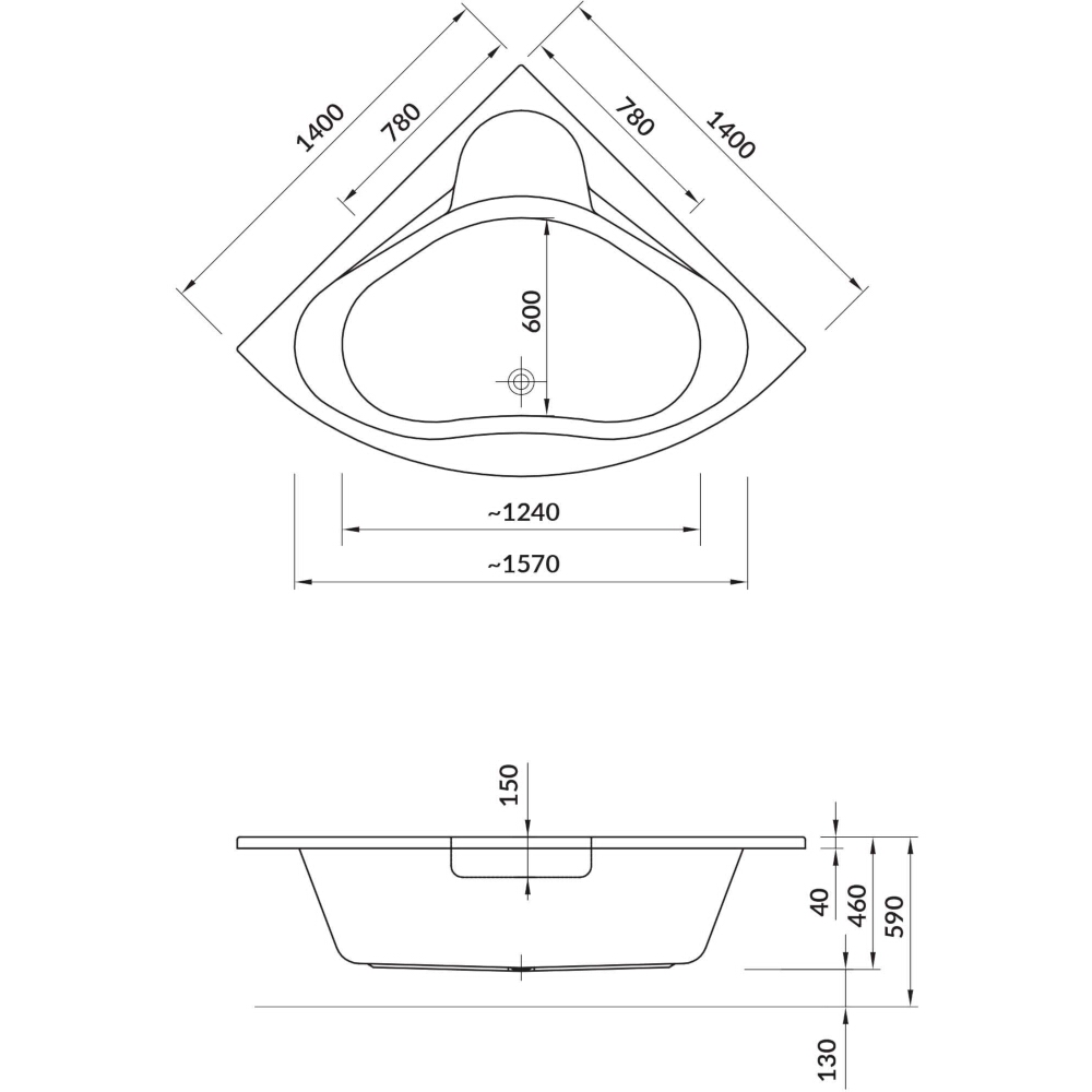 Symmetrische Eckbadewanne Cersanit VENUS 140.