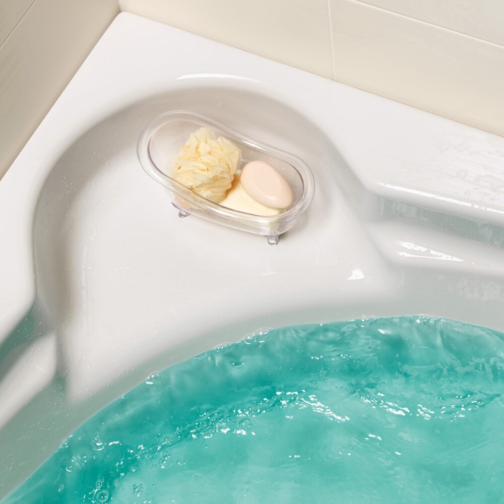 Die symmetrische Badewanne VENUS 150 mit komfortablem, geräumigem Innenraum und einer Sitzecke, die gleichzeitig als praktische Ablage für Badeutensilien dient. Das Modell ist mit einem Abfluss in der Mitte ausgestattet. Es kann eine Batterie eingebaut werden. Wunderschön präsentiert sich die Badewanne in einer Verkleidung aus Mosaik oder mit einer Frontplatte mit profilierter Oberfläche, die separat ergänzt werden kann. Verstellbare Füße sind im Lieferumfang enthalten.