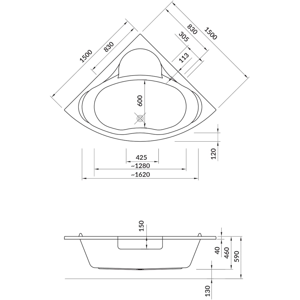 Symmetrische Eckbadewanne Cersanit VENUS 150.