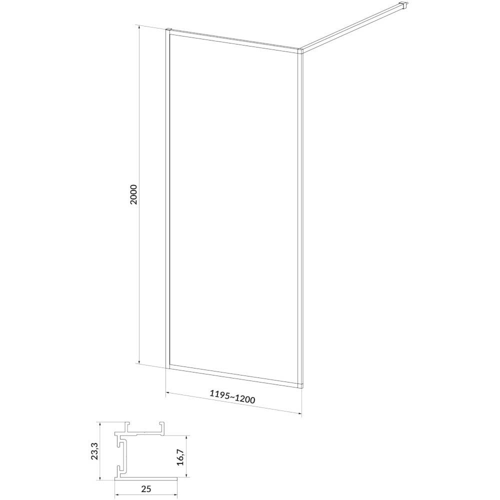 CERSANIT WALK-IN Duschkabine LARGA schwarz 120x200 transparentes Glas S932-140
