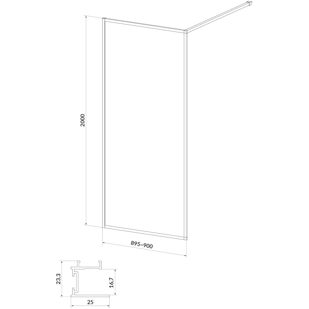 CERSANIT WALK-IN Duschkabine LARGA schwarz 90x200 transparentes Glas S932-138