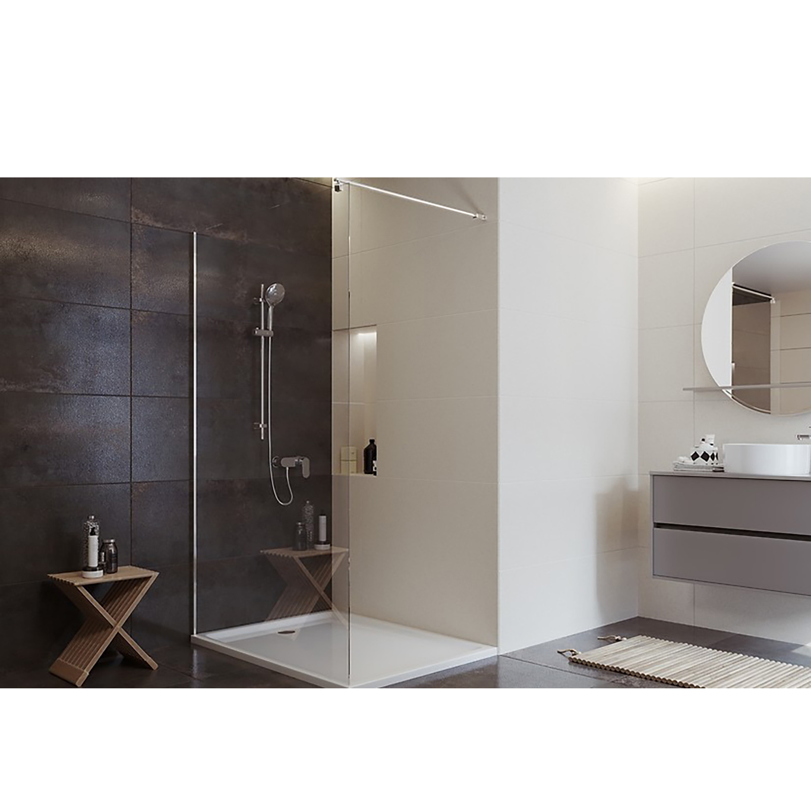 CERSANIT WALK-IN Duschkabine MILLE Chrom 80x200 linearer Ablauf TAKO 70 Stahl S601-245