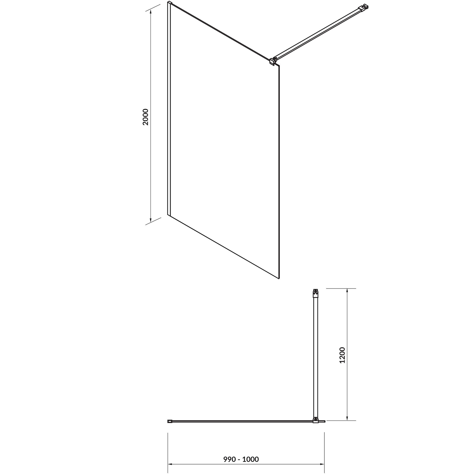 CERSANIT WALK-IN Duschkabine MILLE schwarz 120x200 transparentes Glas S161-004