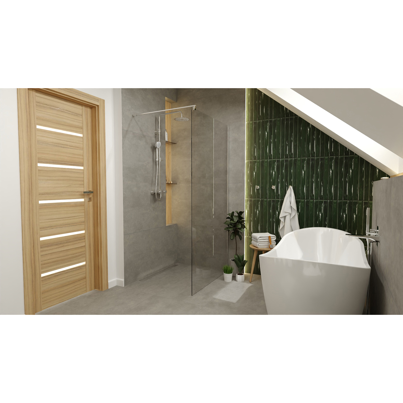 CERSANIT WALK-IN Duschkabine MILLE Chrom 90x200 linearer Ablauf TAKO 80 Stahl S601-242