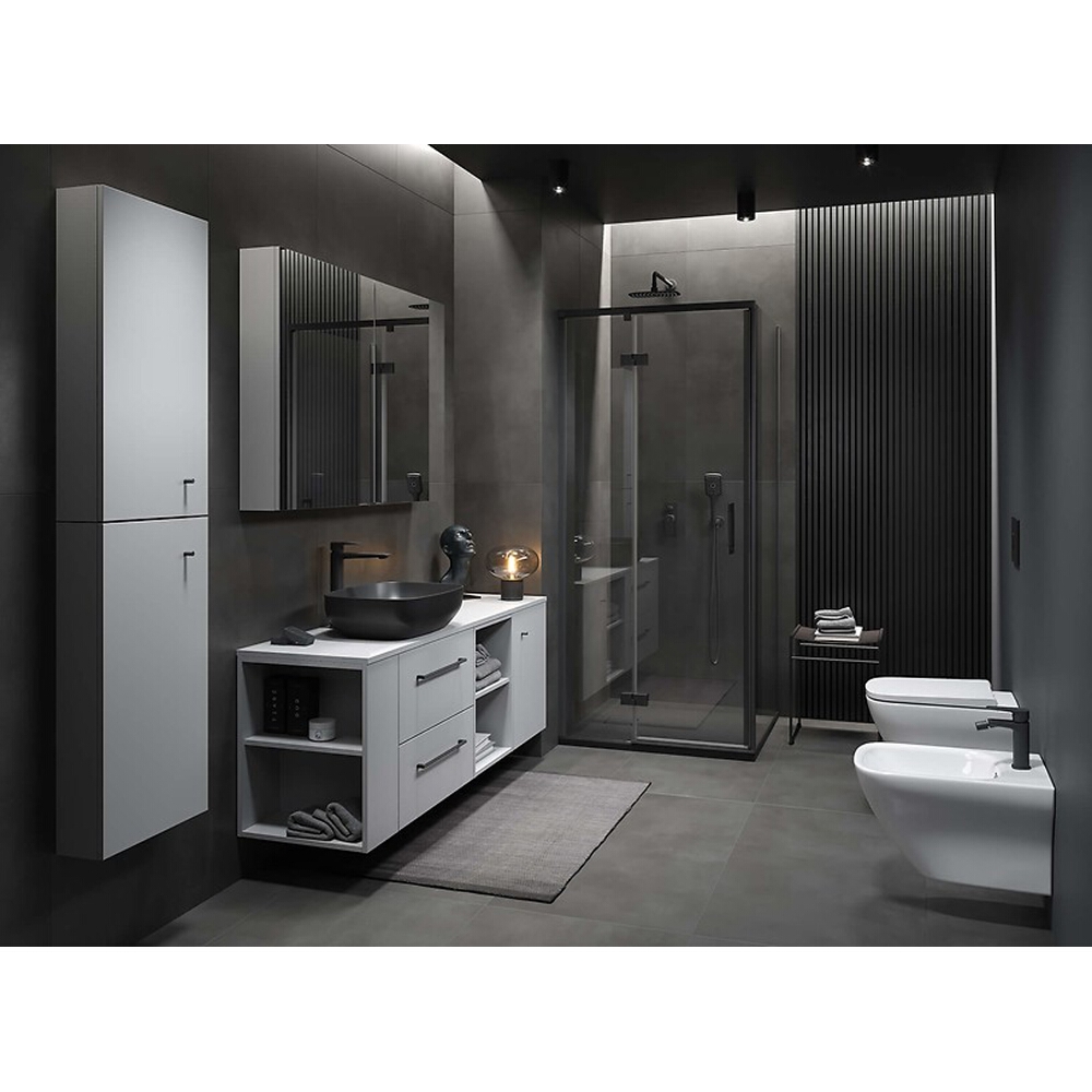 CERSANIT Rechteckige Duschkabine LARGA rechts 90x80x195 cm schwarz S601-303