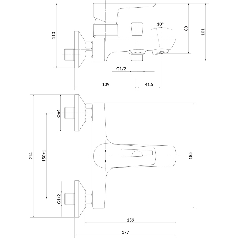 CERSANIT Wandmontierte Badewannen- und Duscharmatur MILLE schwarz S951-009