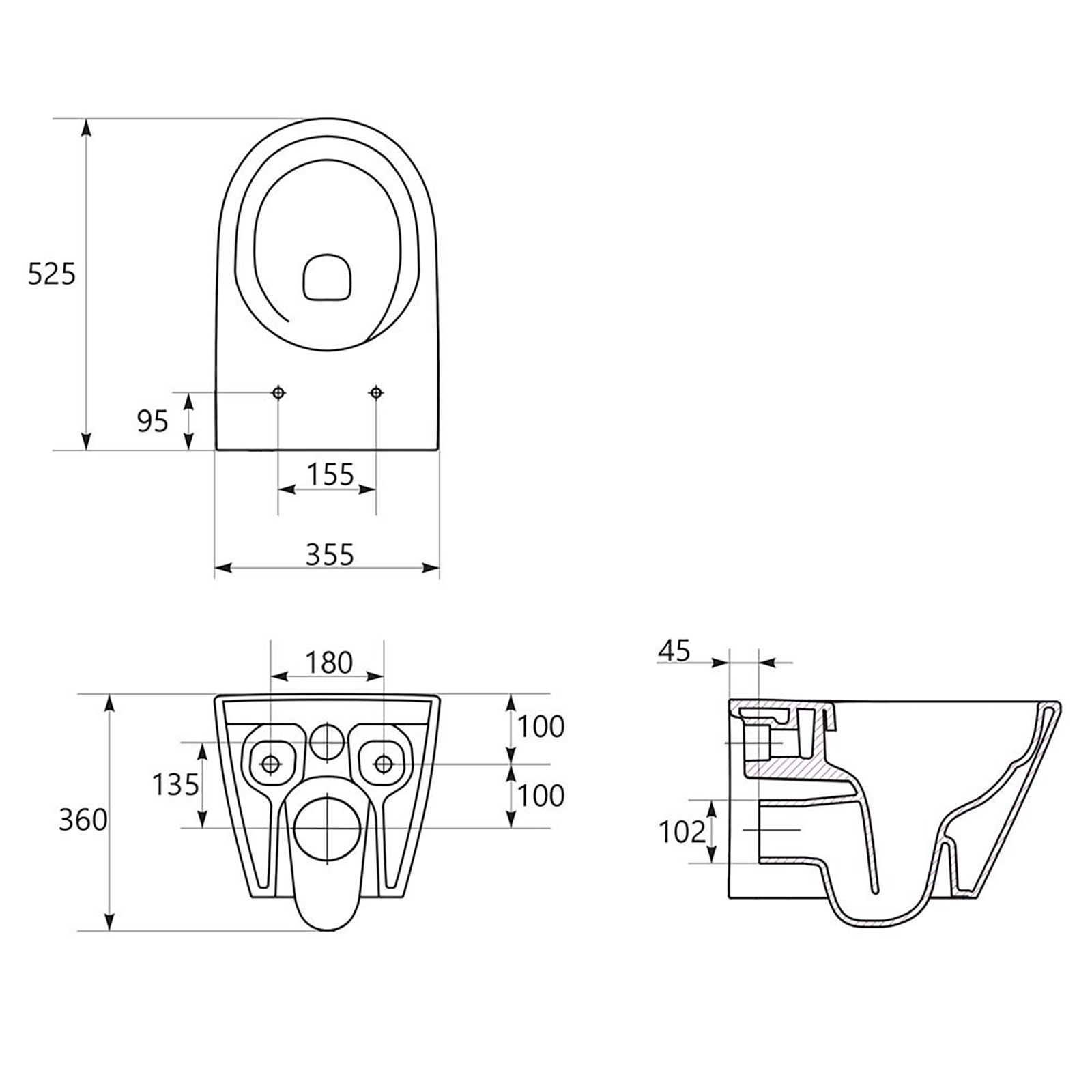 | Typ der Schüssel: | Flanschloser Wirbel WC-Becken |