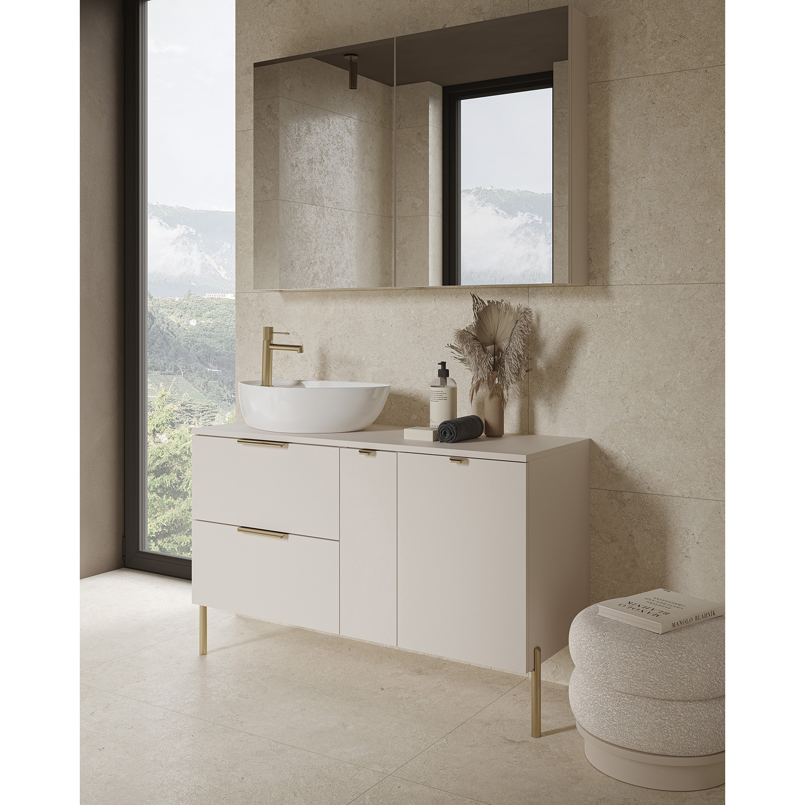 Ein innovatives Merkmal der Kollektion ist die Möglichkeit, ein Öffnungssystem zu wählen: klassischer Soft-Close mit Griff oder moderner Push-to-Open. Im Fall des Soft-Close-Systems kann der Kunde die Möbel zusätzlich personalisieren, indem er Möbelgriffe oder -beine in einer von drei stilvollen Varianten kauft: Chrom, schwarz matt oder gebürstetes Gold.