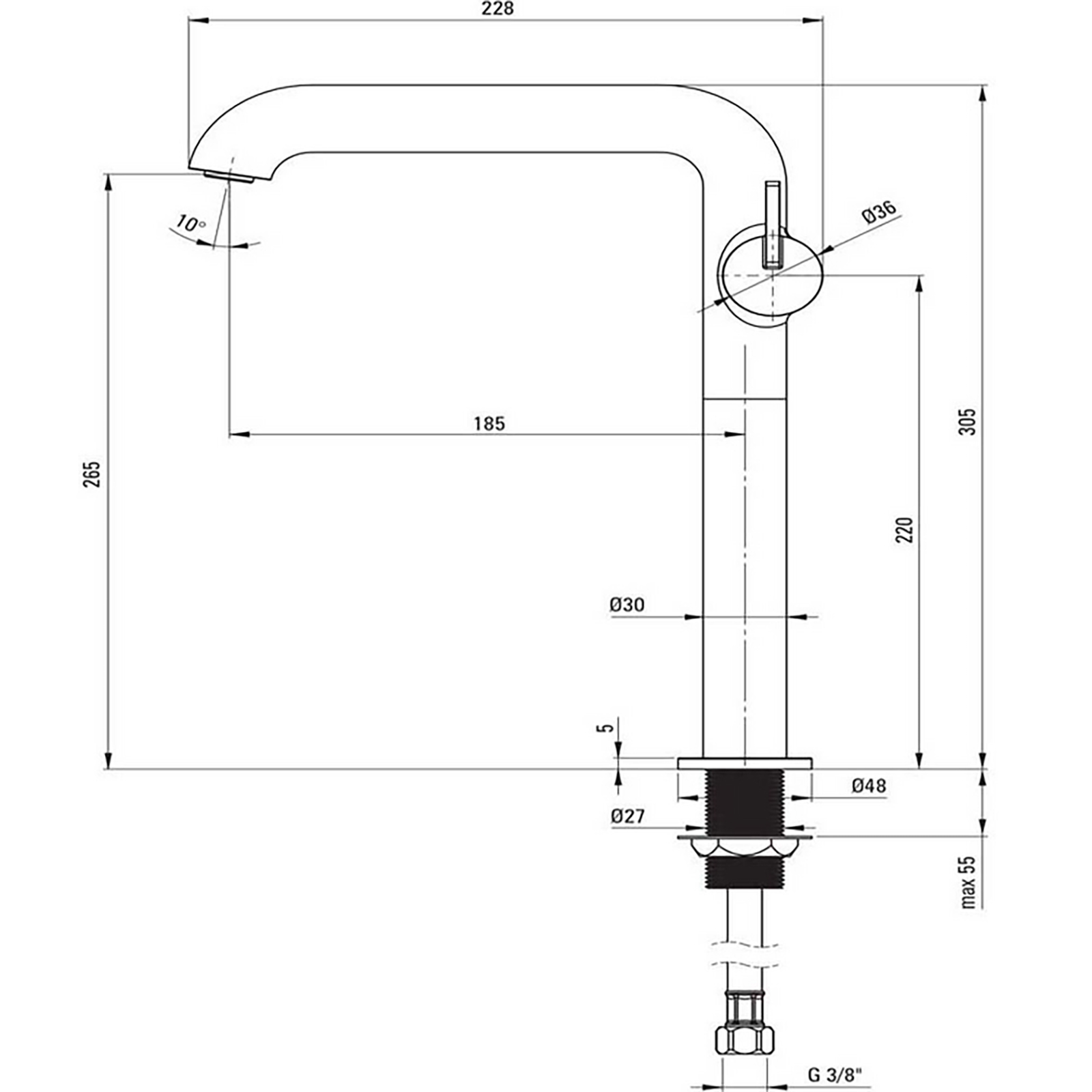 | Höhe der Armatur: | 305 mm |