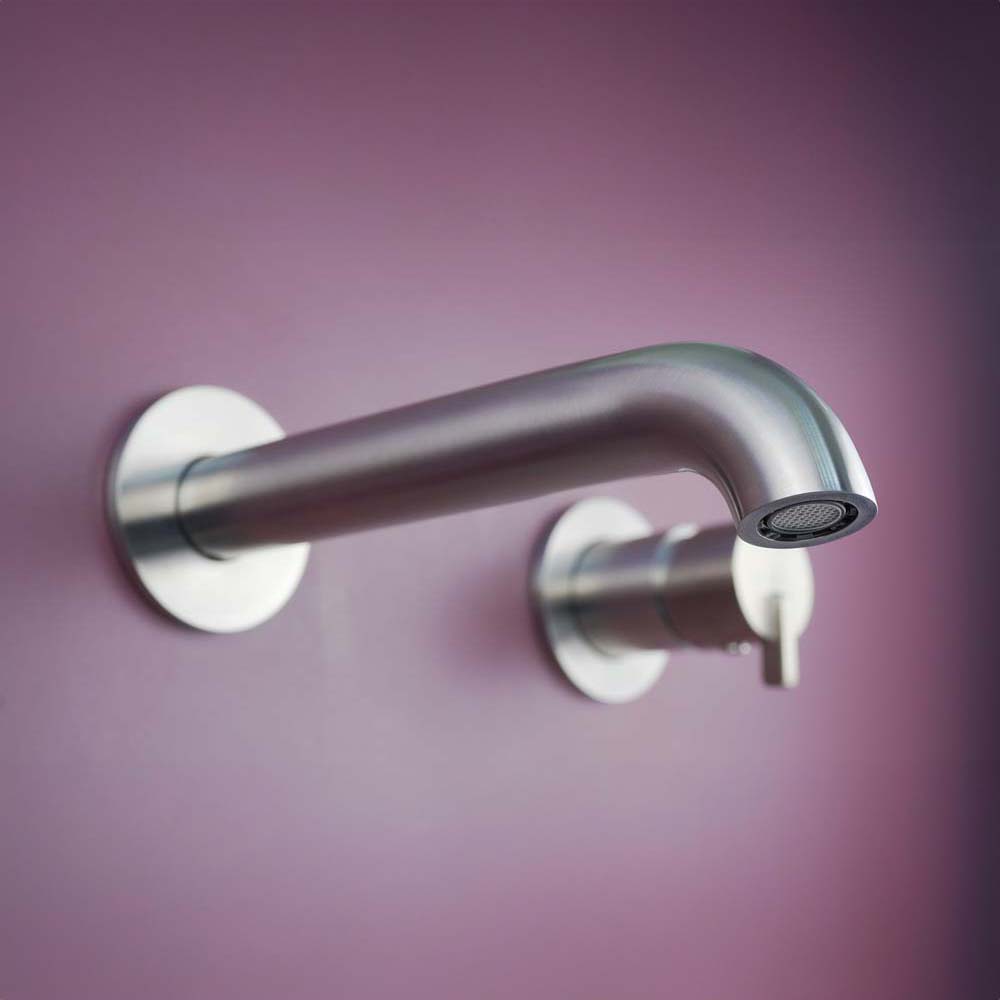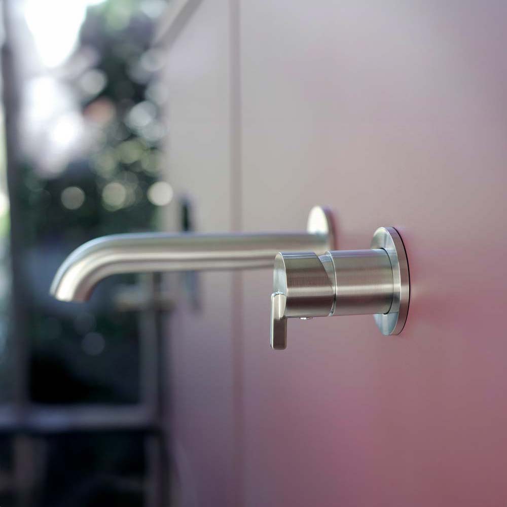Stahl Der Silia-Wasserhahn zeichnet sich durch seine schlanke, minimalistische Form und den sorgfältig durchdachten Hebel aus. Sie besteht aus langlebigem Messing und ist mit gebürstetem Stahl versehen. Der Silia-Wasserhahn ist einfach, bescheiden und zeichnet sich durch seine große Praktikabilität aus. Der Wasserhahnhebel ist würfelförmig, zugleich äußerst konstruktiv und ergonomisch. Die bündige Installation verleiht dem Badezimmer ein ästhetisches Aussehen und erleichtert die Sauberkeit.