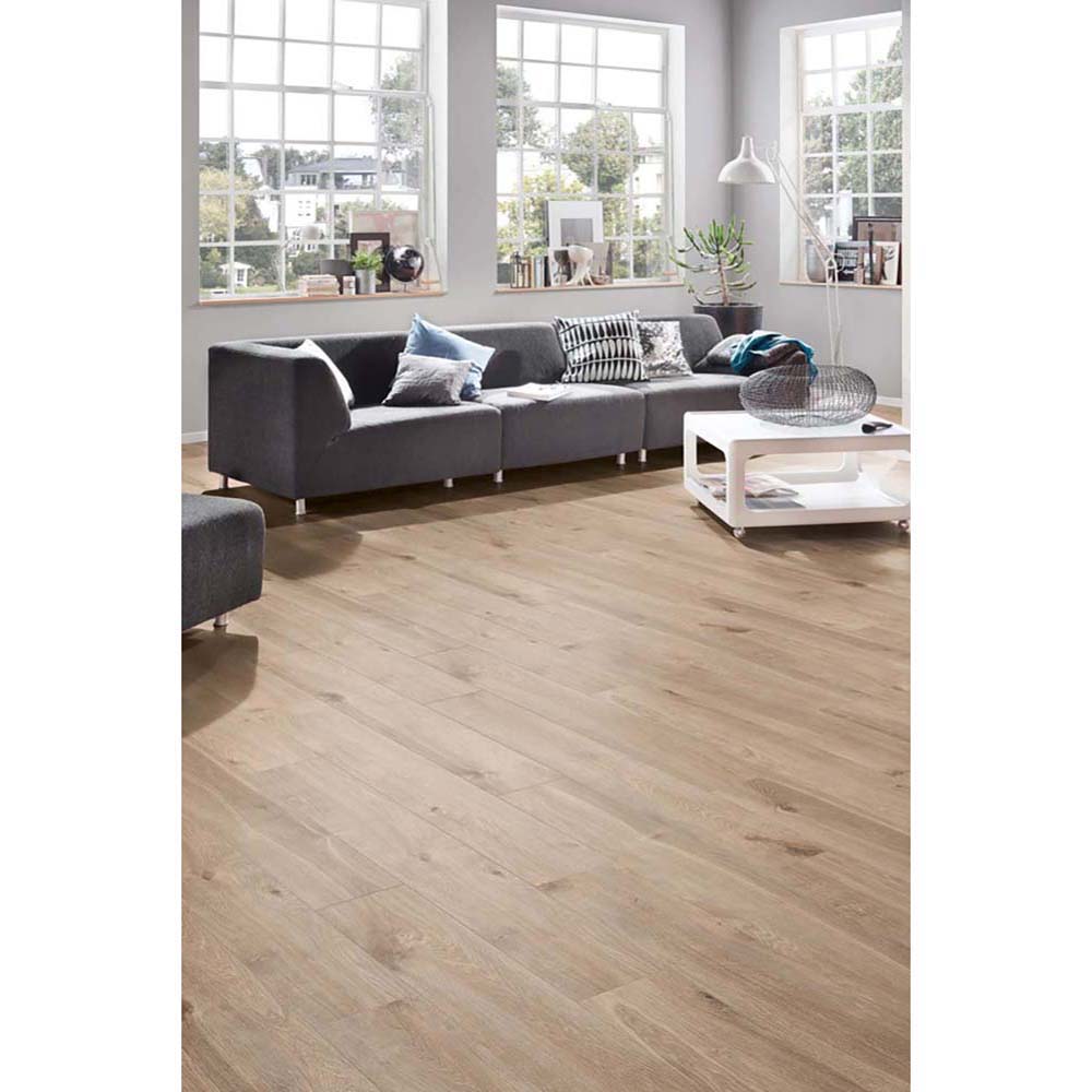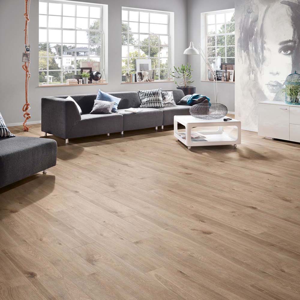 Kronostep Laminatböden sind die ideale Lösung für Menschen, die sich einen natürlich aussehenden Boden in ihrer Wohnung wünschen, der leicht zu reinigen ist und den Geldbeutel schont. Diese Paneele geben das Aussehen von natürlichem Holz naturgetreu wieder - in Kombination mit der verwendeten V-Fuge sehen diese Böden aus wie aus echtem Holz gefertigt.
