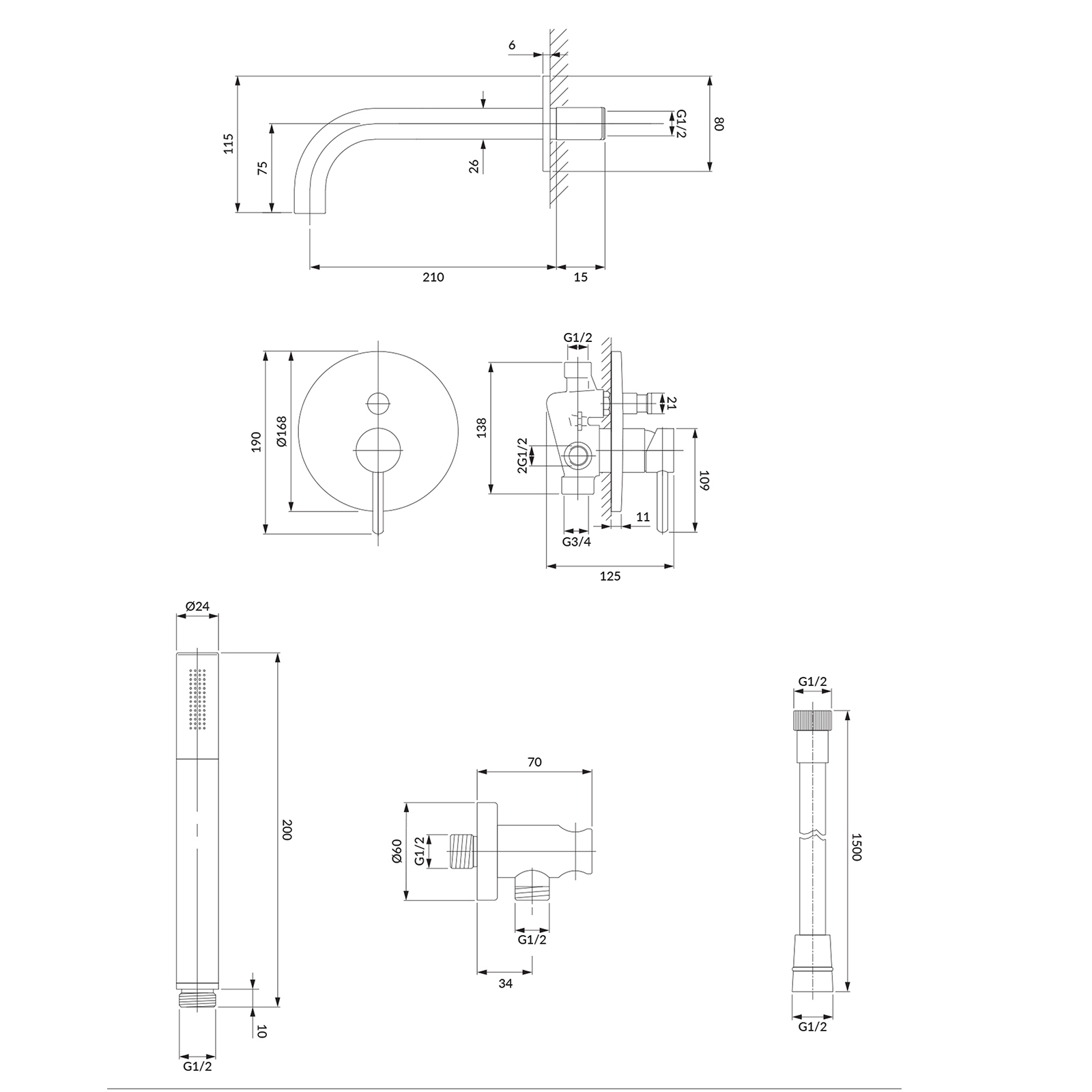 - wandmontierter Auslauf (WDYNI), Auslaufbereich: 21 cm