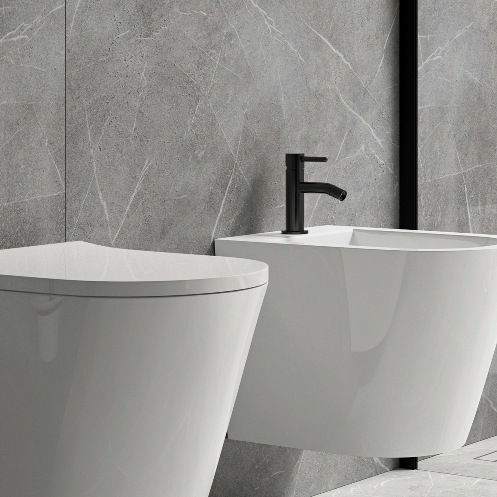 Bidet-Wasserhahn Y steht schwarz halbmatt.