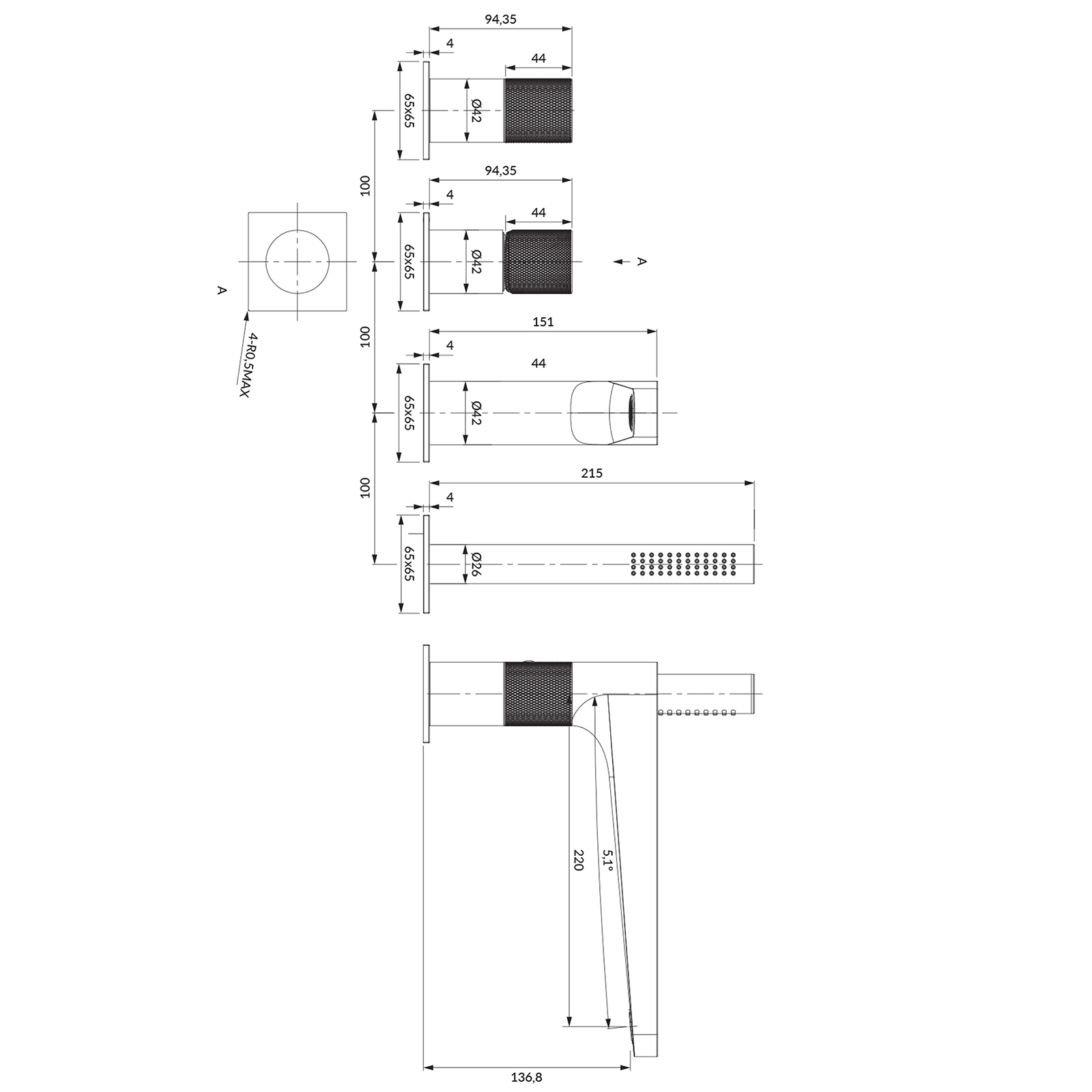 - Auslaufbereich: 22 cm