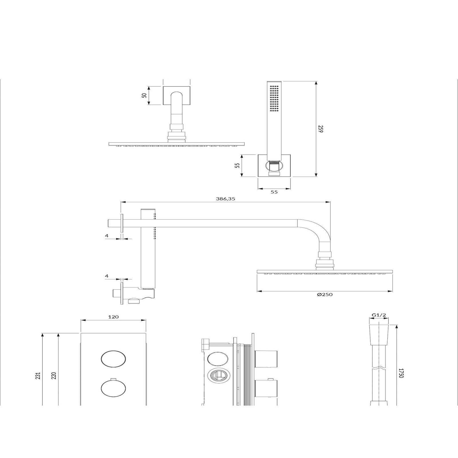 Thermostatisches Duschsystem CONTOUR bündig montiert