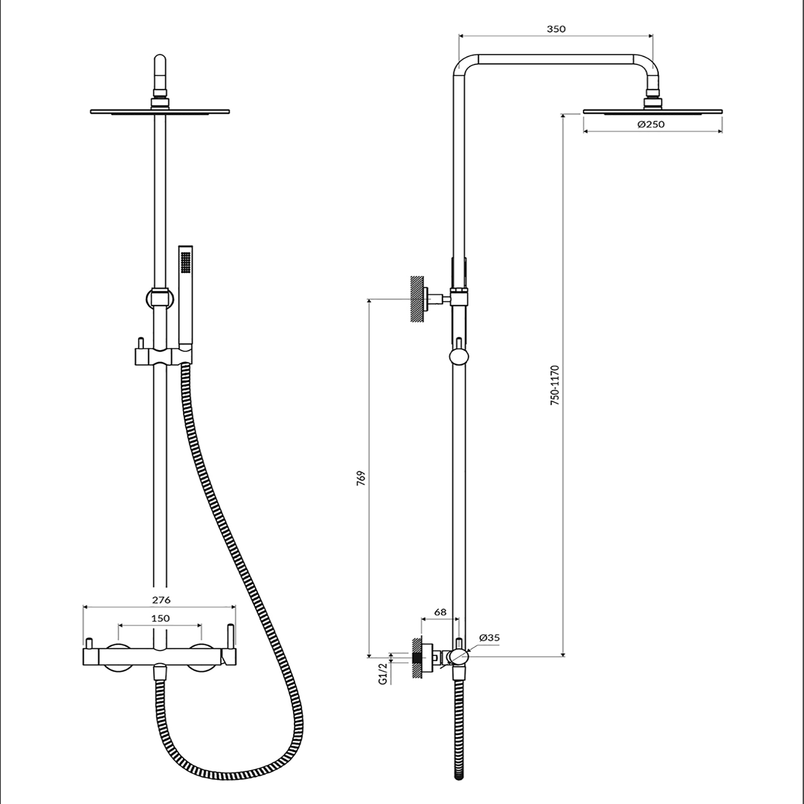 - Messing-Regendusche, ø 25 cm, Reichweite von der Wand: 42 cm
