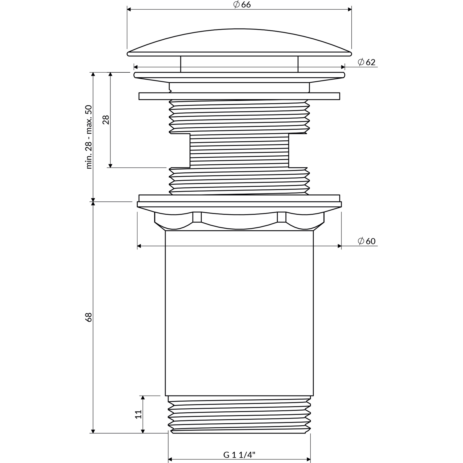 OMNIRES Klick-Klack-Stopper glänzender Chrom für Waschbecken mit Überlauf A706CR